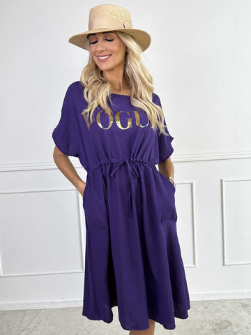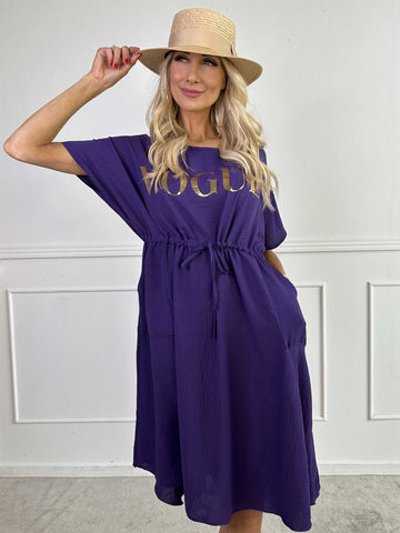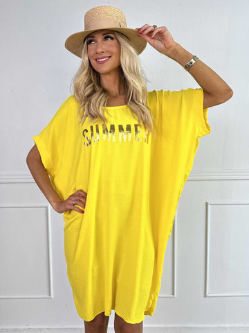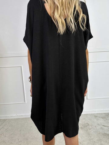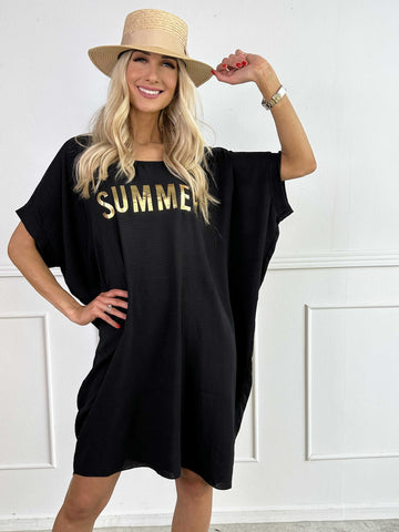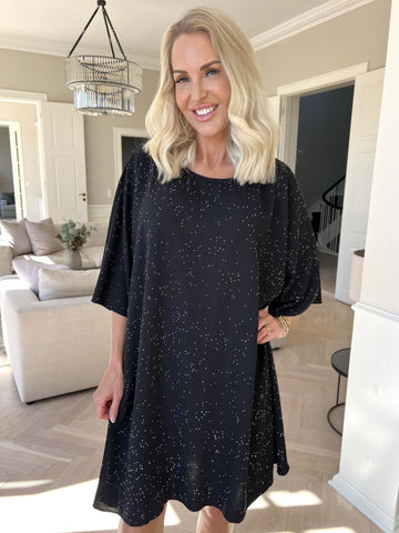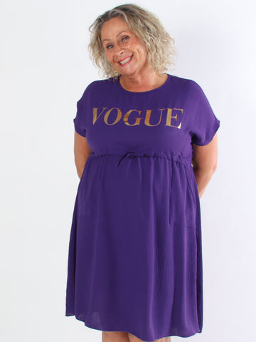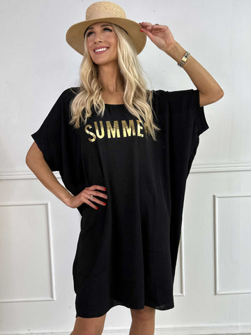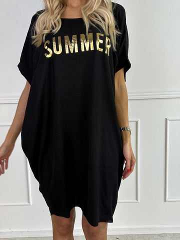 Bine - Sød plus size kjole i løs pasform med guld print på brystet