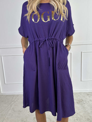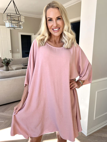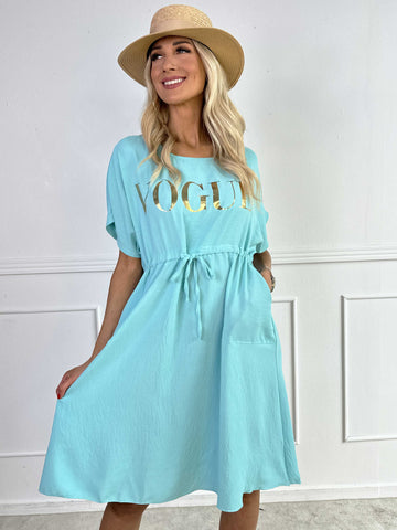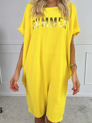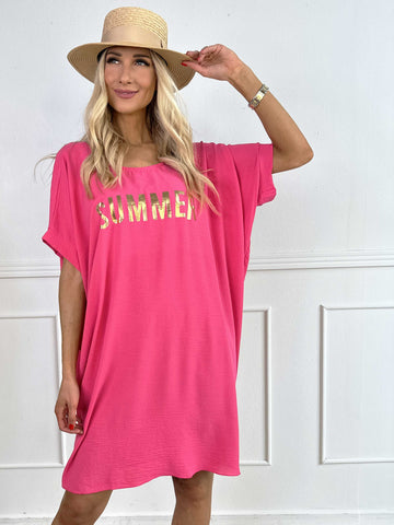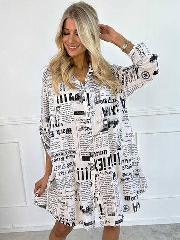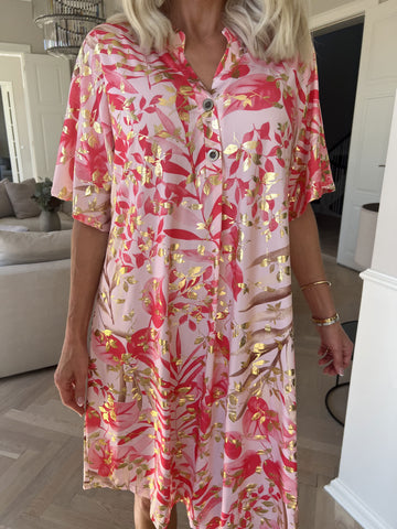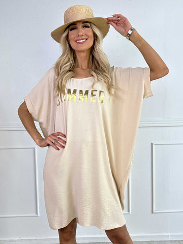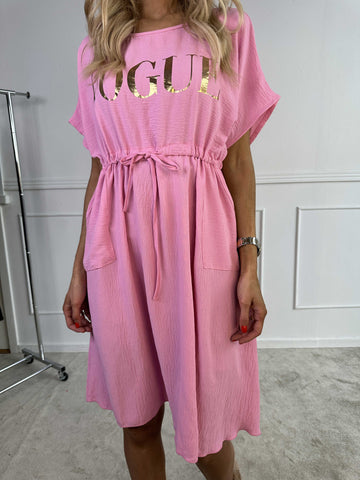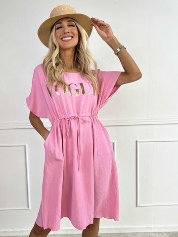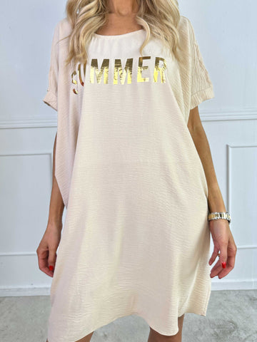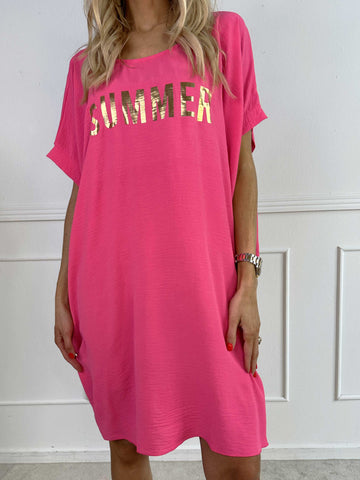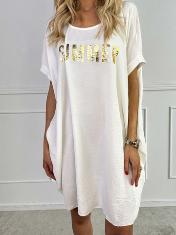 Bine - Sød kjole i løs pasform med guld print på brystet