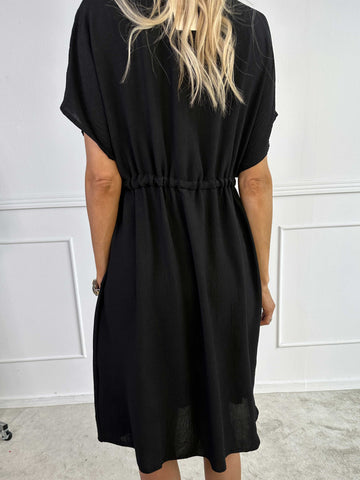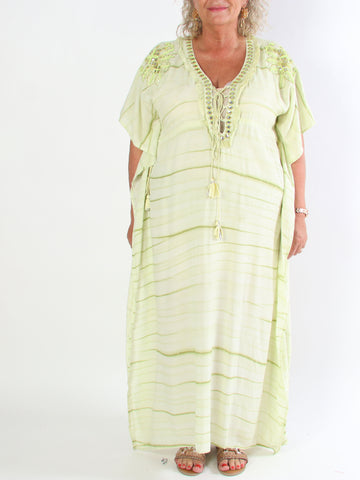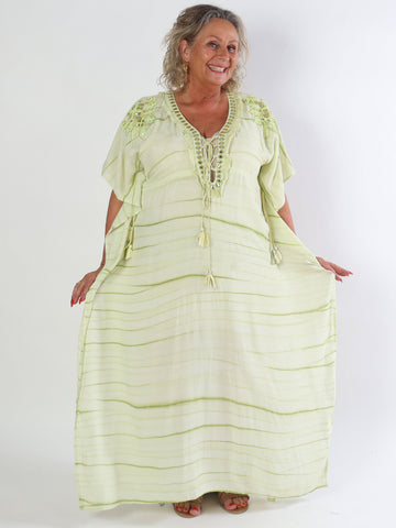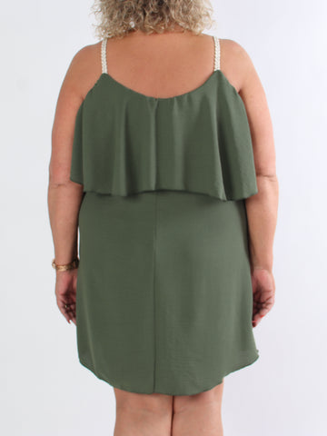 Avery - Plus size kjole i viskose detaljeret med perler og snøre ved brystet