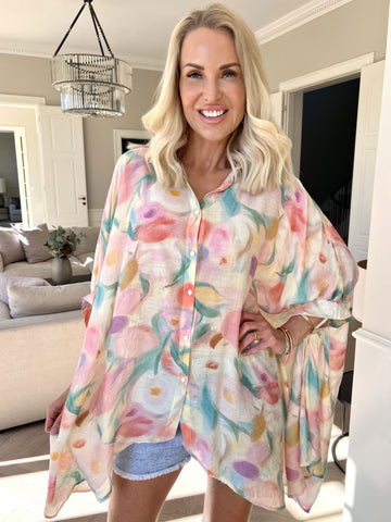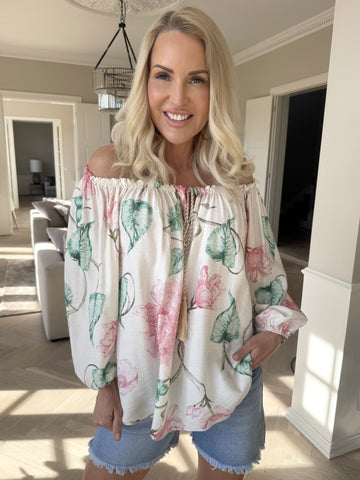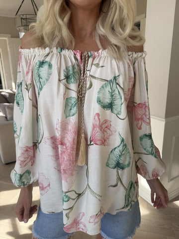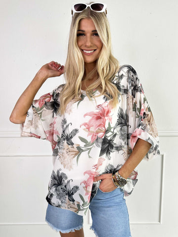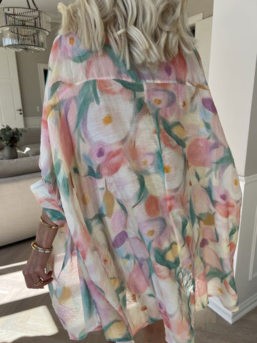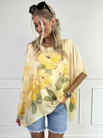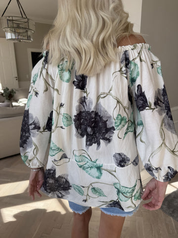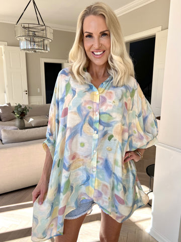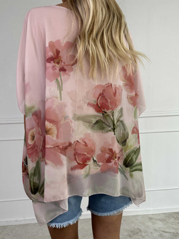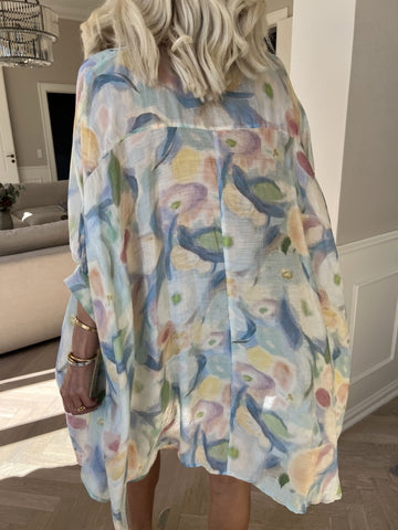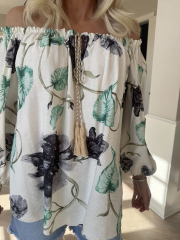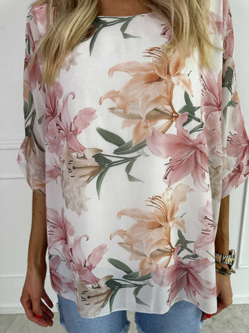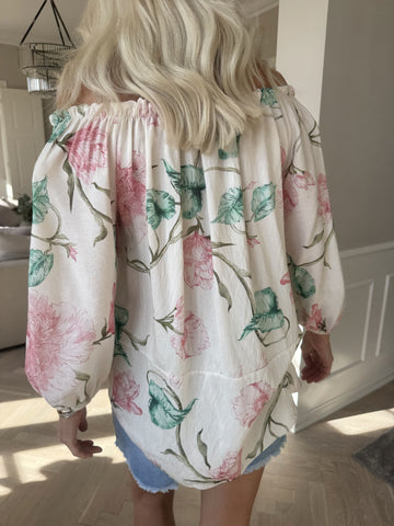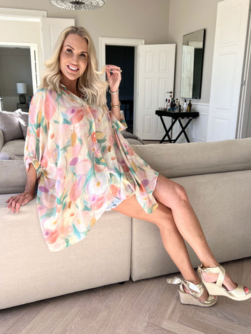 Mirabella Shirt - Sød tunika med løst chiffonlag med blomstermotiver
