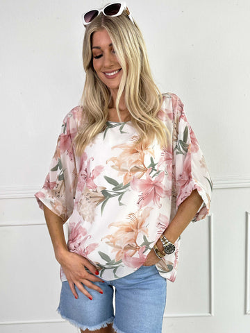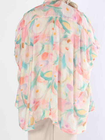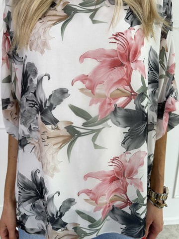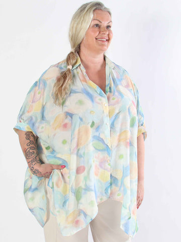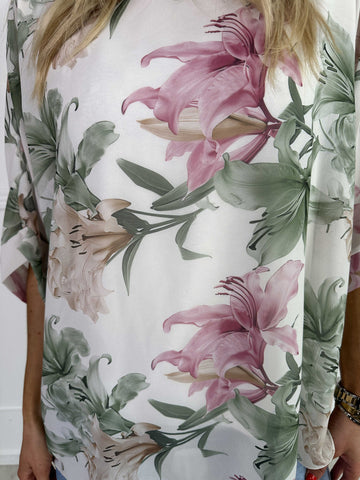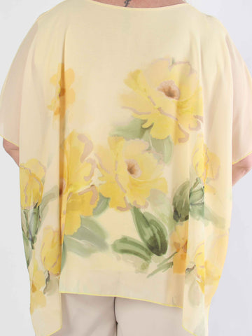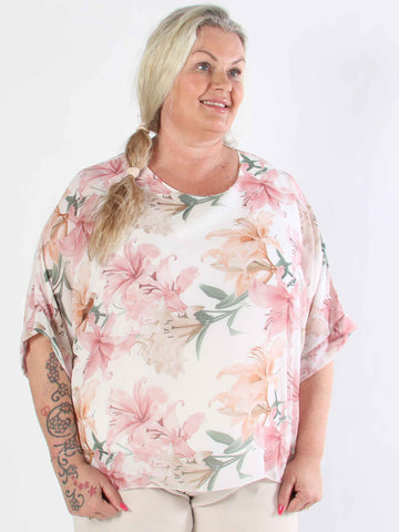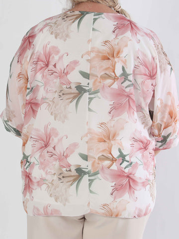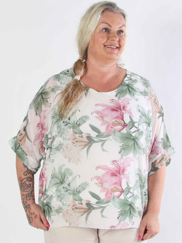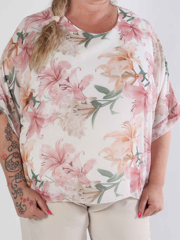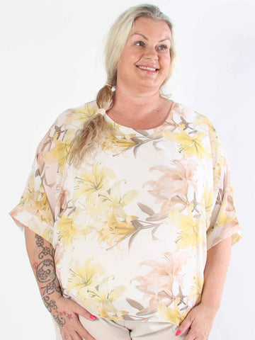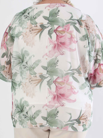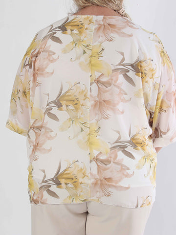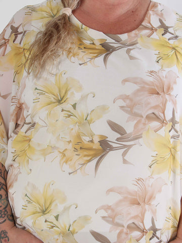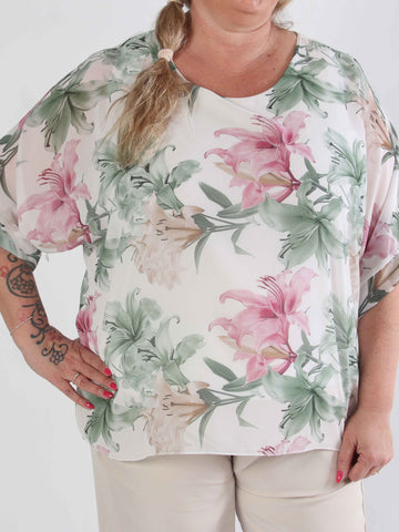 Mirabella Shirt - Plus size tunika med løst chiffonlag med blomstermotiver