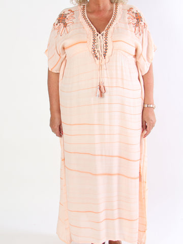 Carnelia - Plus size tunikakjole i viskose med broderet kanter