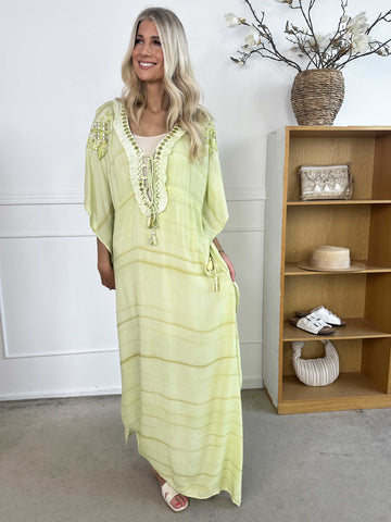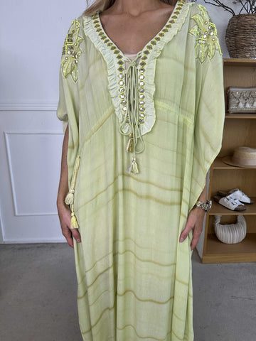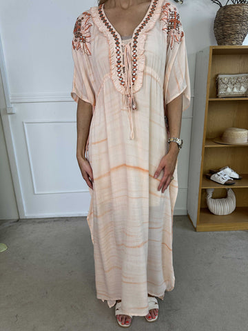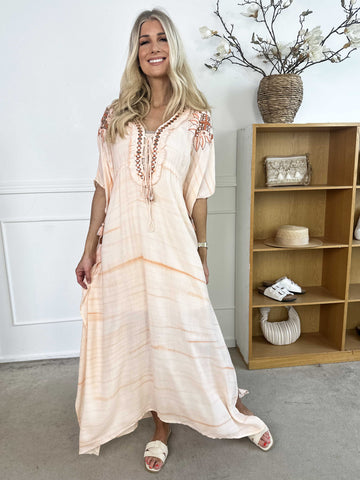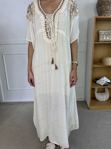 Avery - Tunikakjole i viskose detaljeret med perler og snøre ved brystet