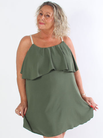 Johanne - Ensfarvet plus size kjole pyntet med similisten