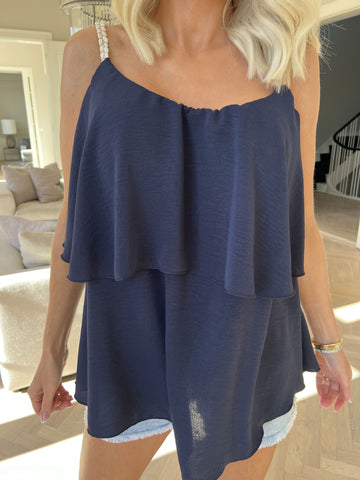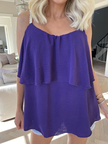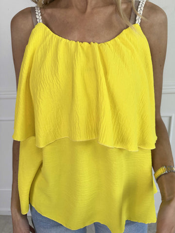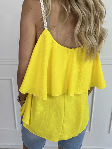 Sunlove Crystal Top - Ensfarvet elastisk top med similisten