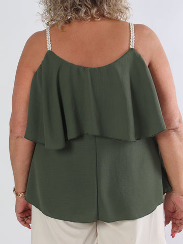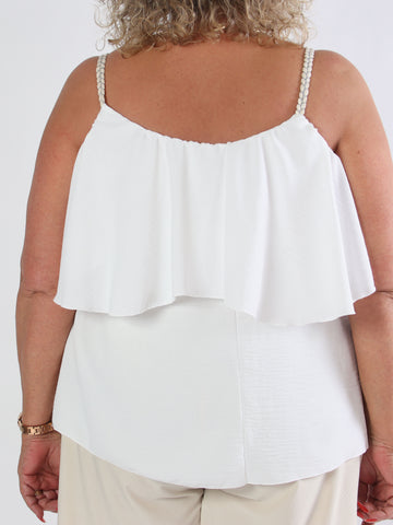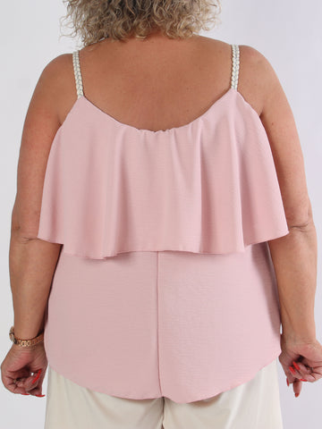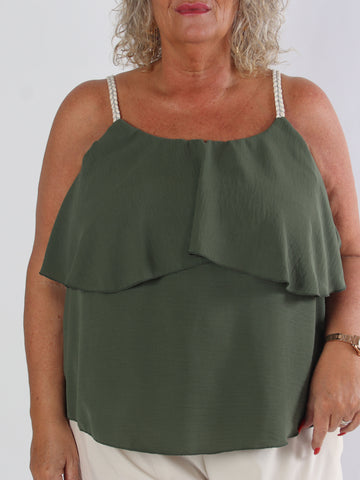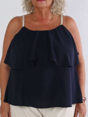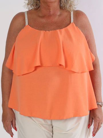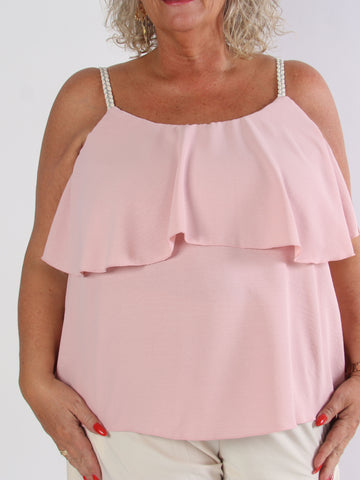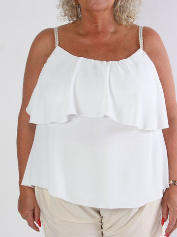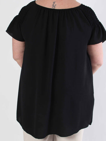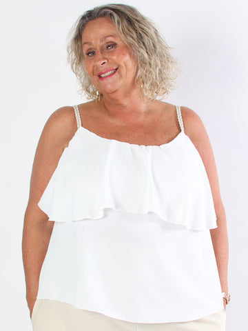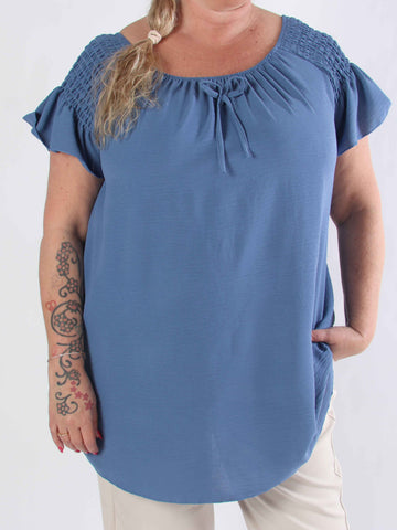 Esther - Plus size tunika med flæseærmer og elastik i udskæringen