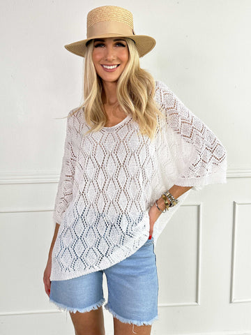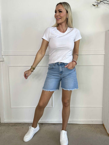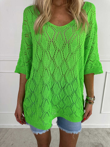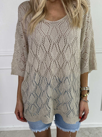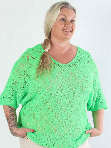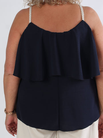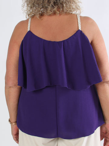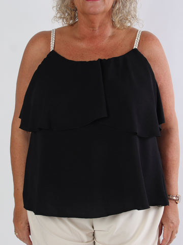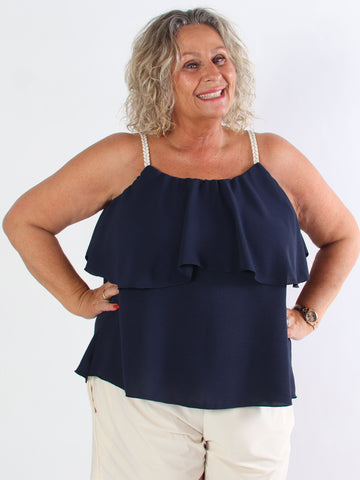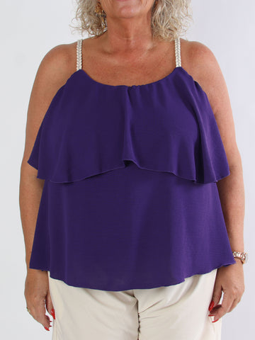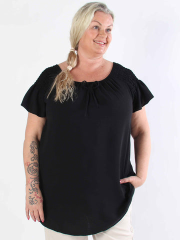 Sunlove Crystal Top - Ensfarvet plus size elastisk top med similisten