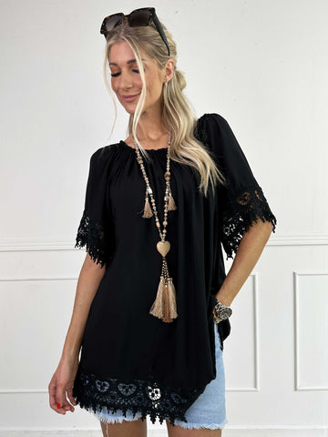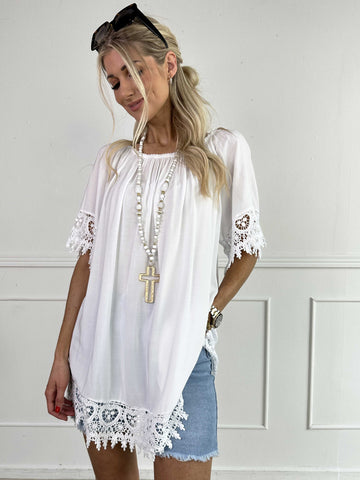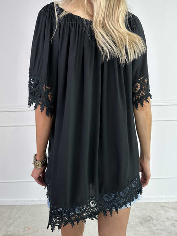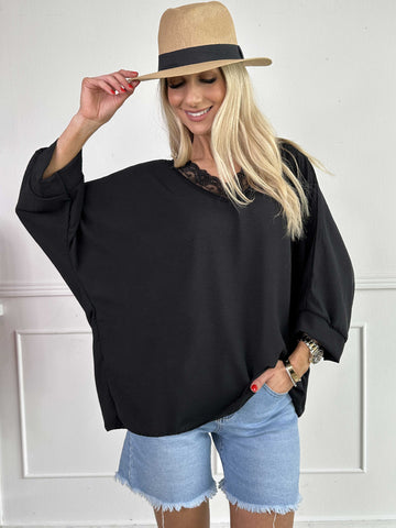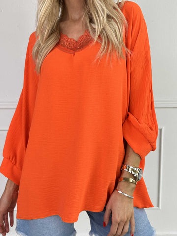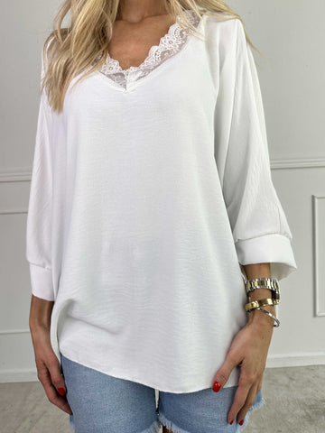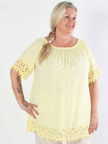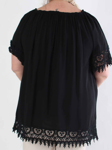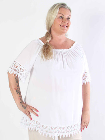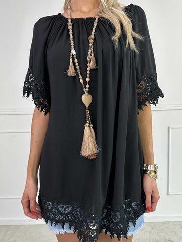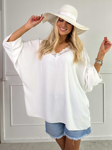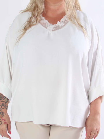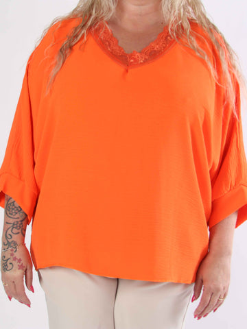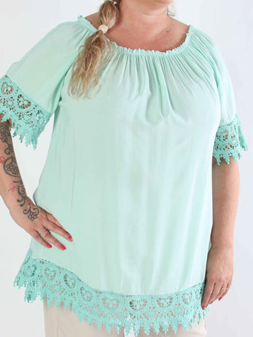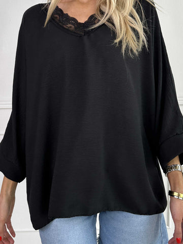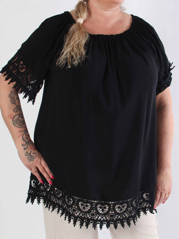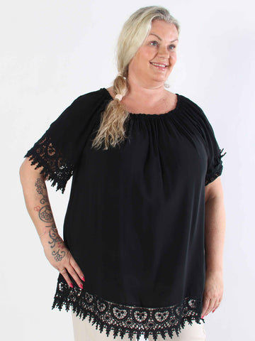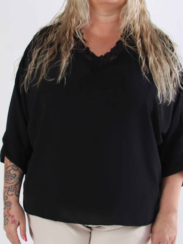 Leonora - Plus size tunika med flagermusærmer og blonde