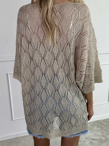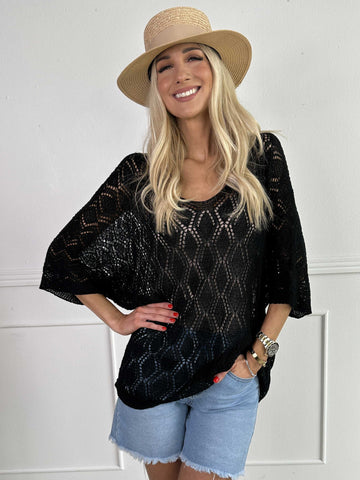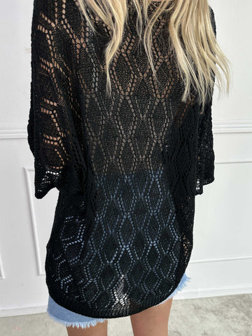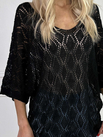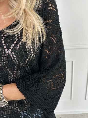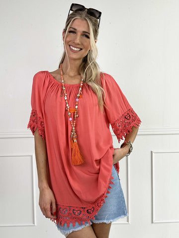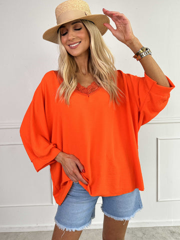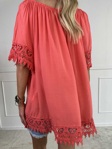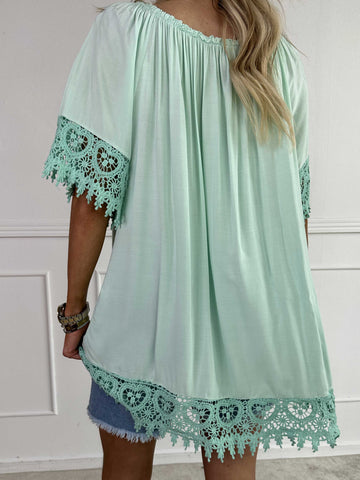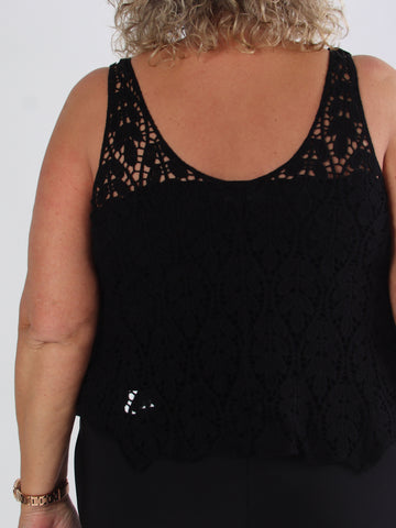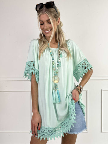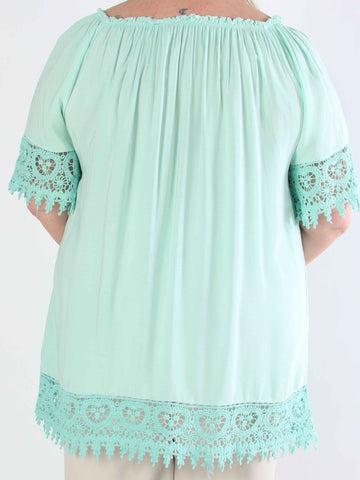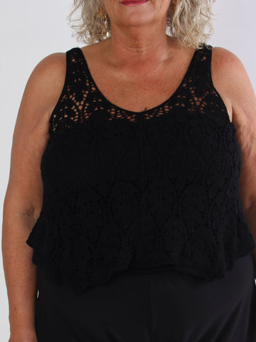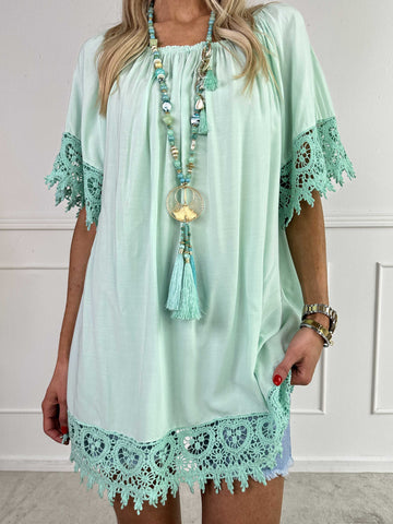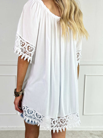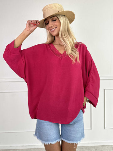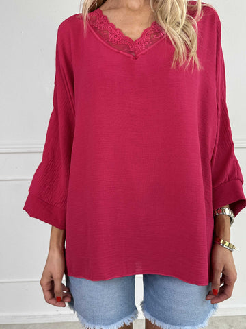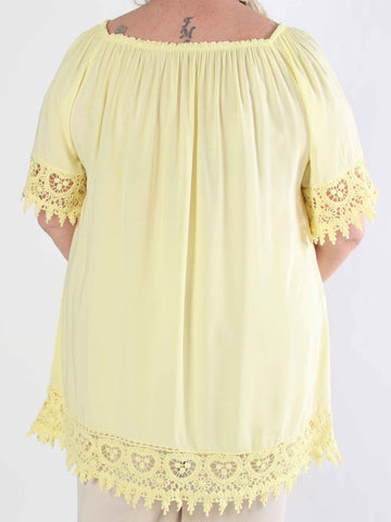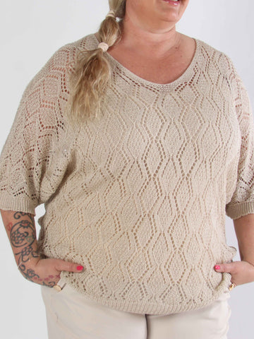 Leonora - Plus size tunika med flagermusærmer og blonde
