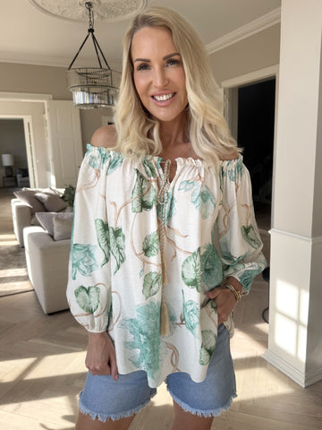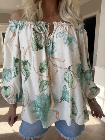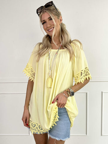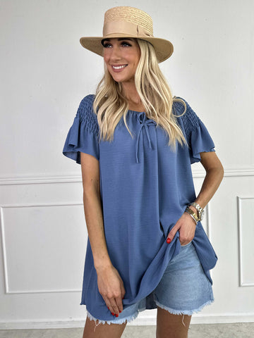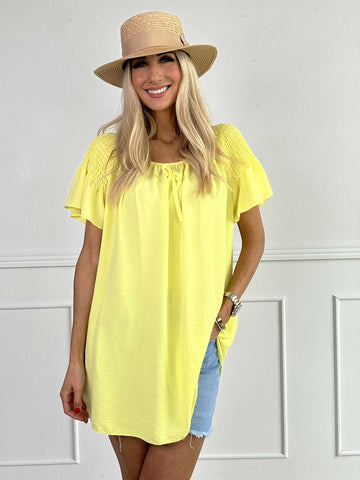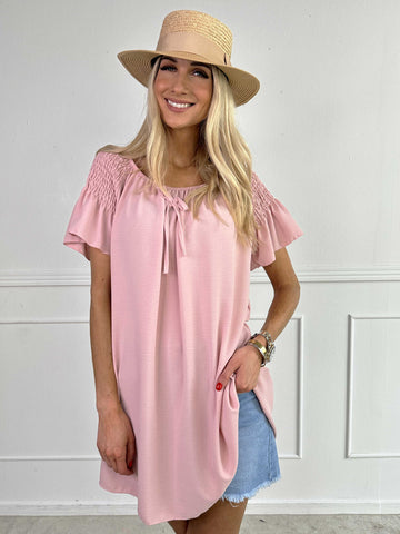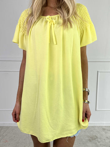 Esther - Sød tunika med flæseærmer og elastik i udskæringen