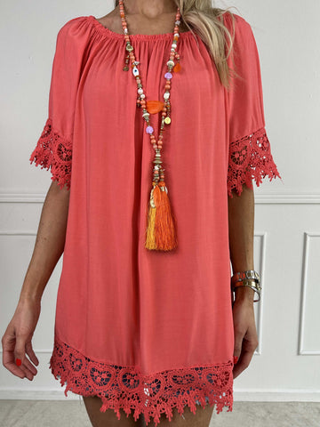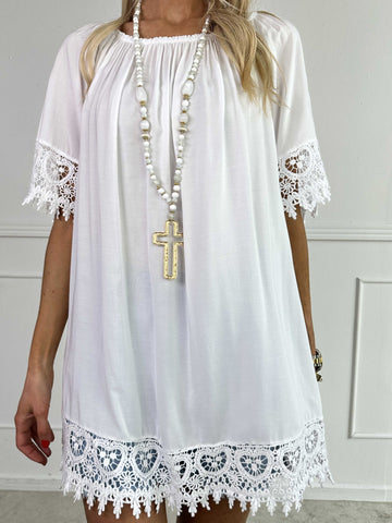 Carnelia - Sød tunikakjole i viskose med broderet kanter