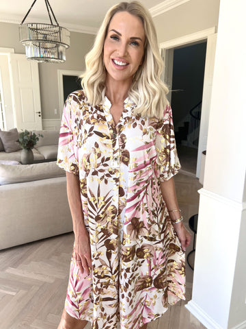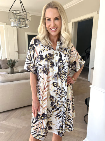 Camilia - Flerfarvet skjortekjole i løs pasform