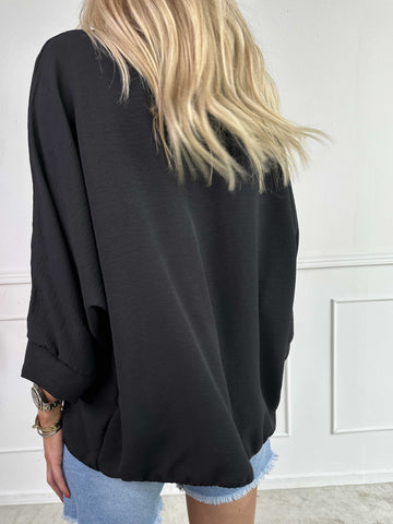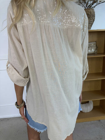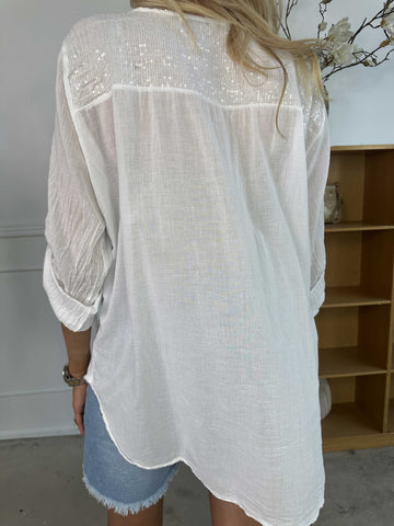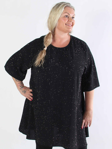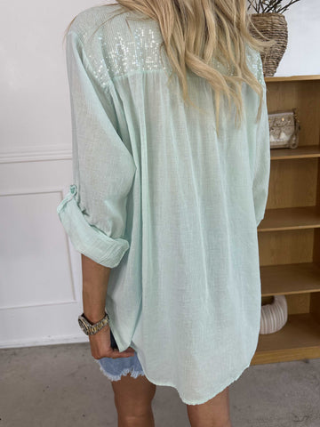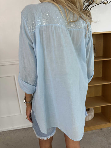 Kim Shirt - Sød plus size elastisk bluse med glitrende pailletærmer