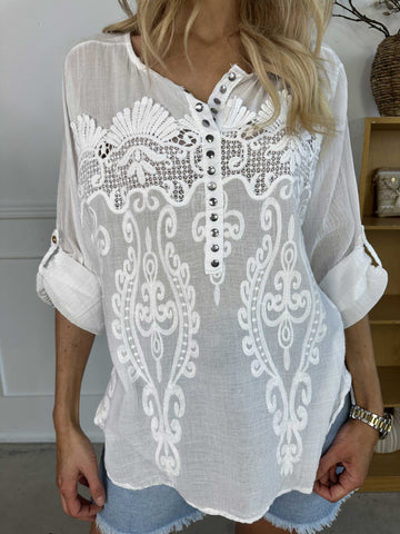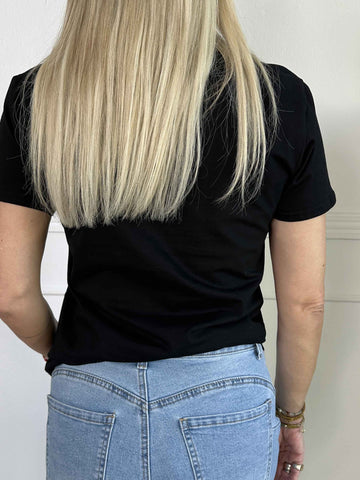 Selma - T-shirt i bomuld med broderet detaljer og similisten på brystet