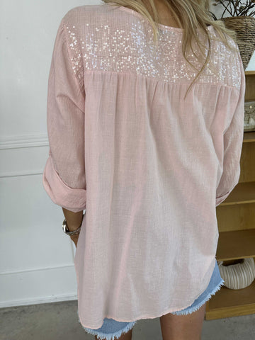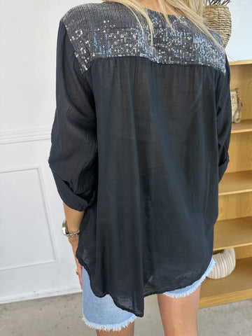 Kim Shirt - Sød og feminin elastisk bluse med glitrende pailletærmer