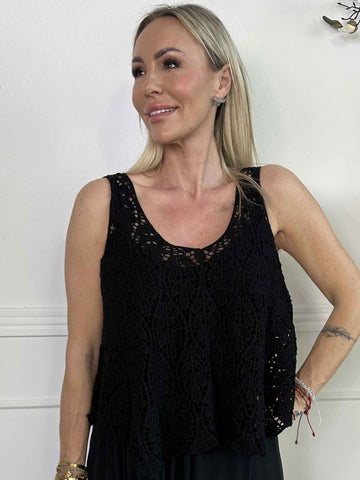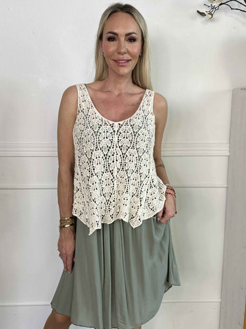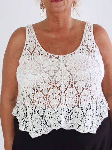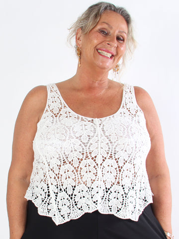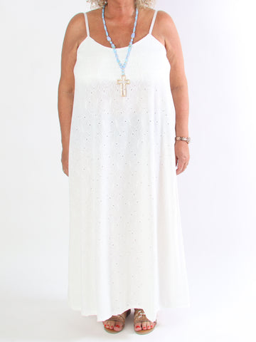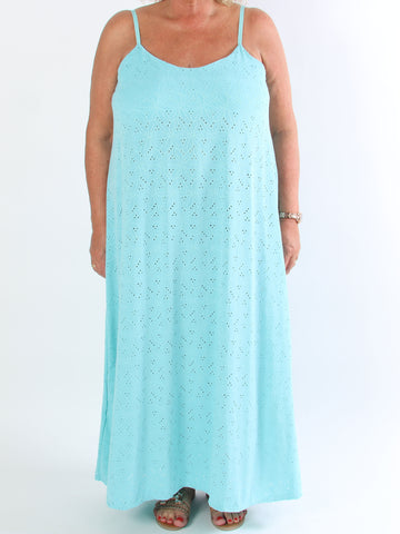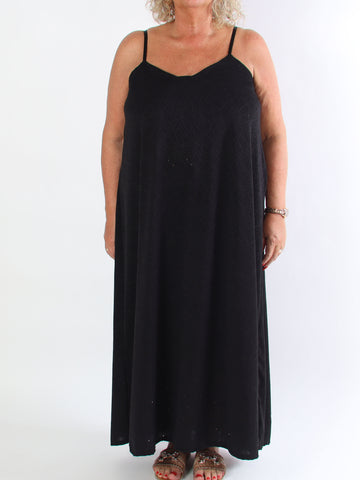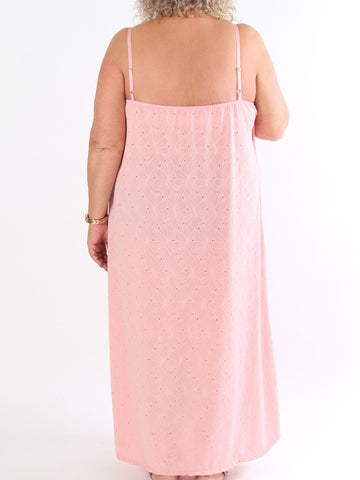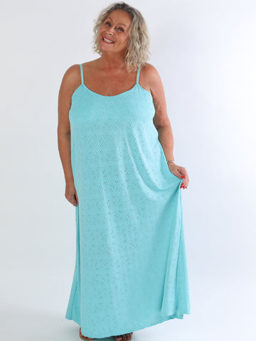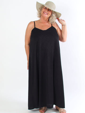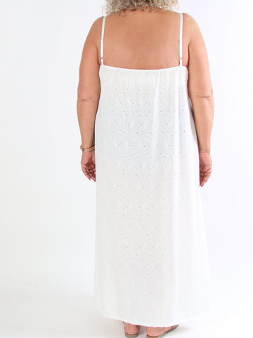 Lea - Lang hæklet plus size stropkjole i bomuld