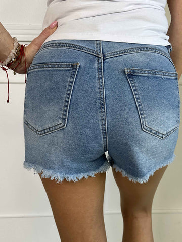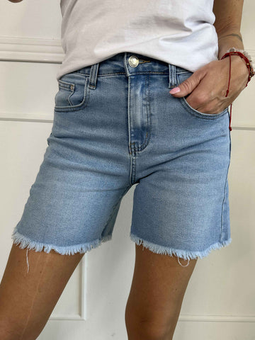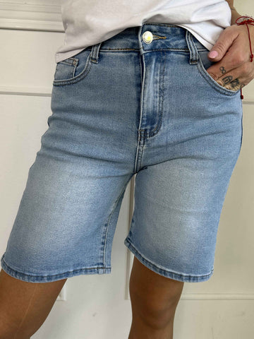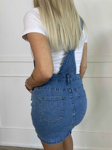 Liva - Smæknederdel i klassisk denim med justerbare seler