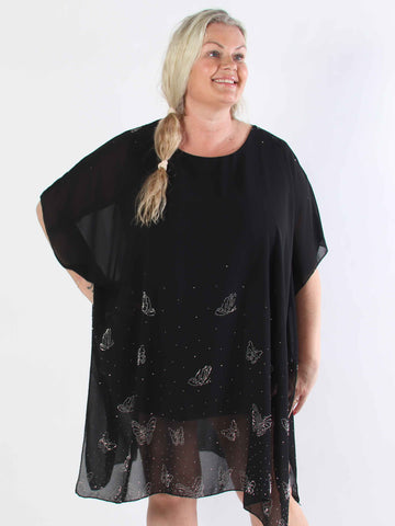 Mirabella Crystal - Plus size tunikakjole med chiffonlag med similisten