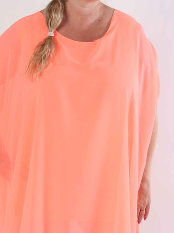 Mirabella Plain - Plus size tunikakjole med chiffonlag og underkjole i viskose