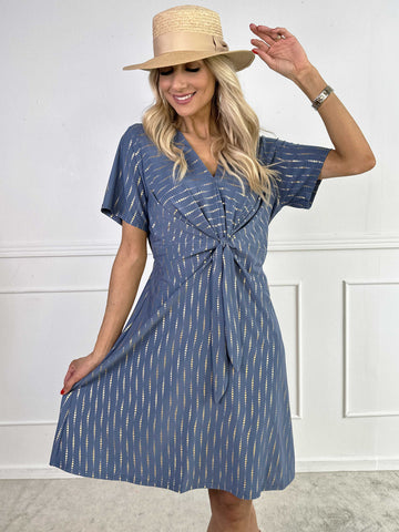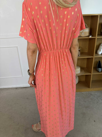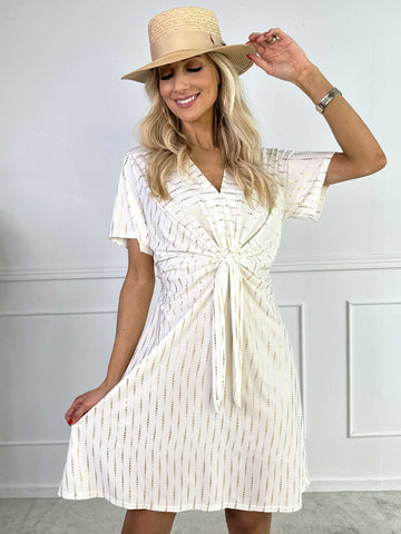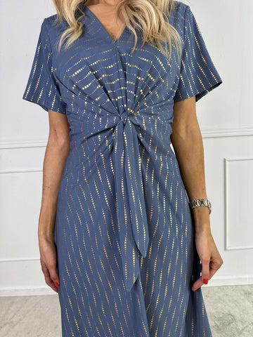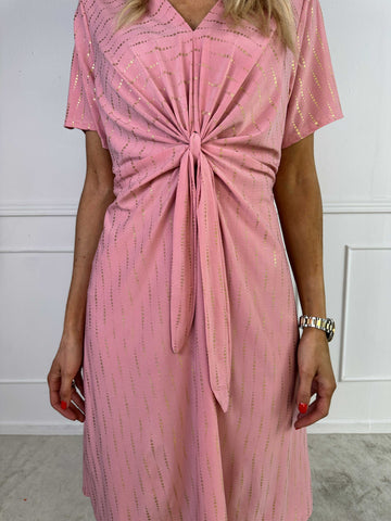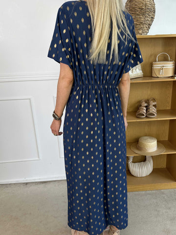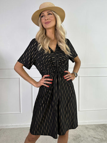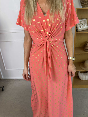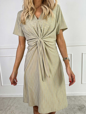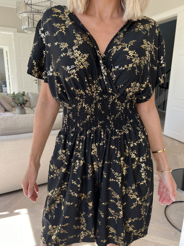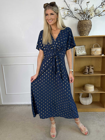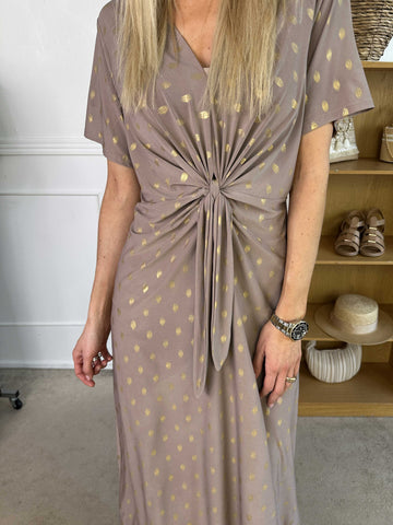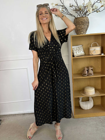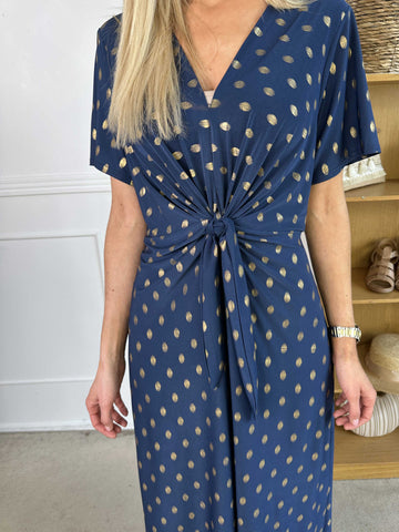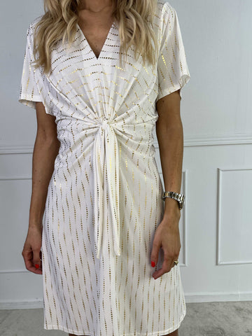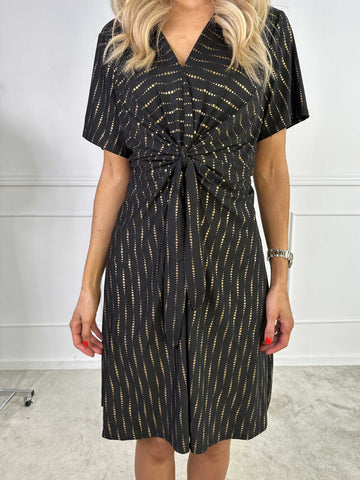 Molly Dot Pattern Short - Kjole i elastisk stof med knudedetalje og guld print