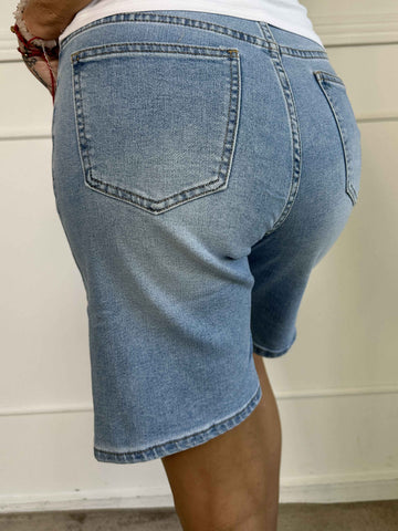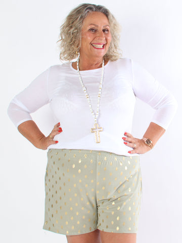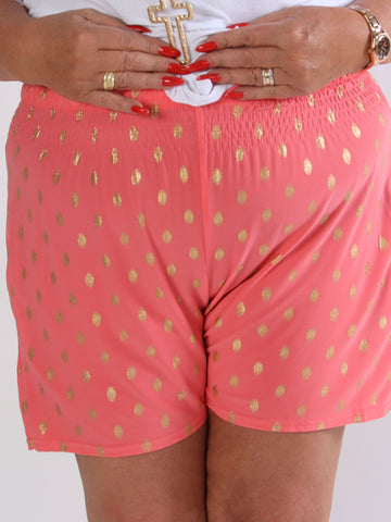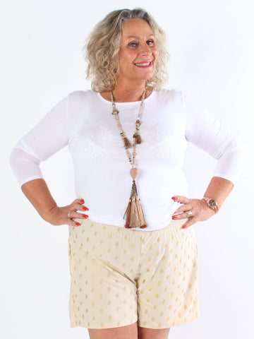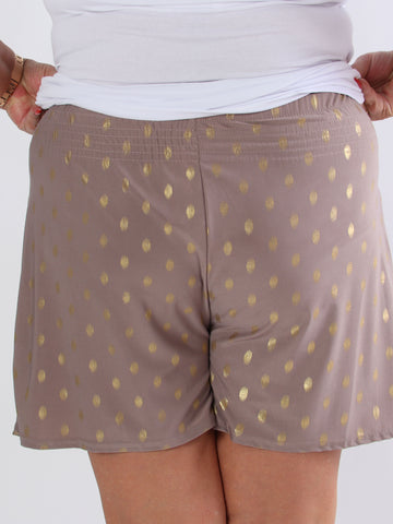 Pams Dot Shorts - Plus size shorts i elastisk stof med guld dutter