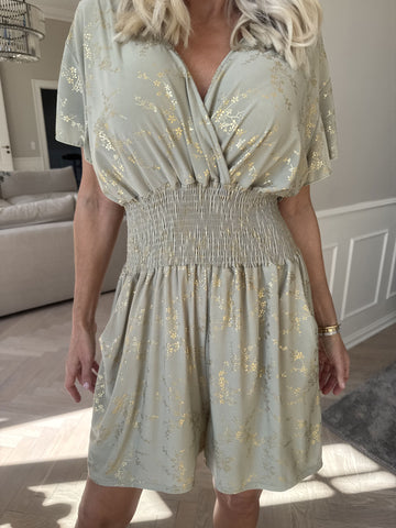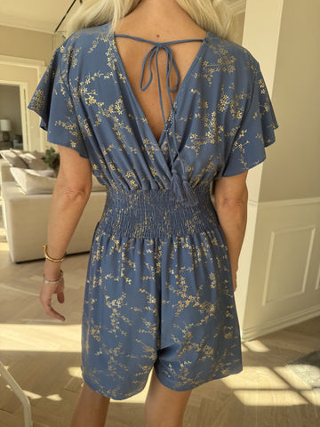 Pams Gold Playsuit - Elastisk buksedragt med gold print