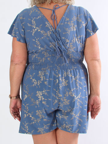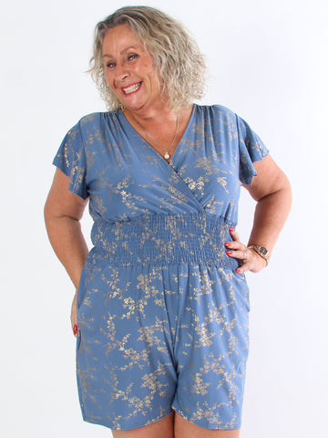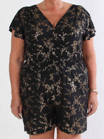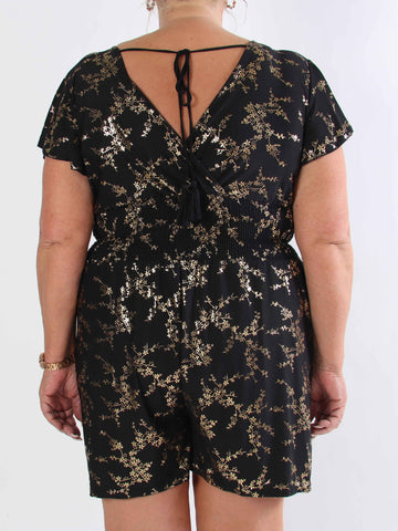 Pams Gold Playsuit - Elastisk plus size buksedragt med guld print