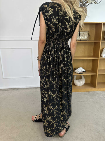 Pams Gold Sleeveless - Lang elastisk kjole med guld print