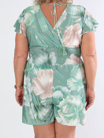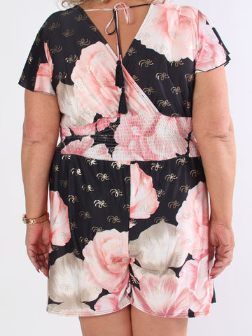 Pams Peony Playsuit - Elastisk plus size buksedragt med blomstermotiv