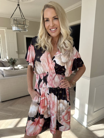 Pams Peony Playsuit - Elastisk buksedragt med blomstermotiv