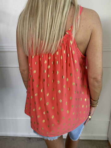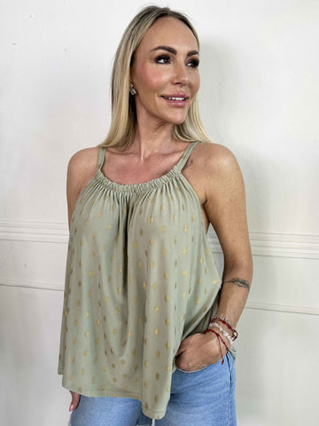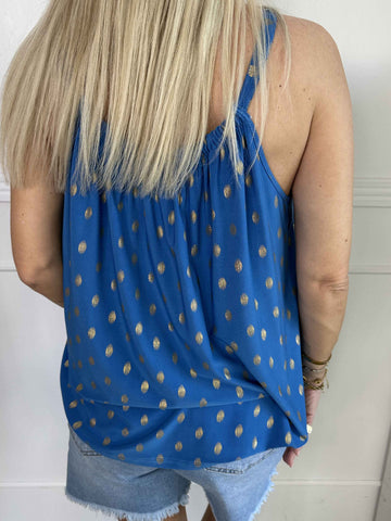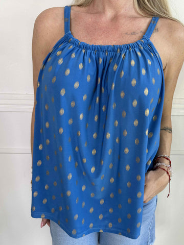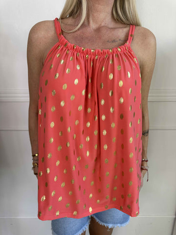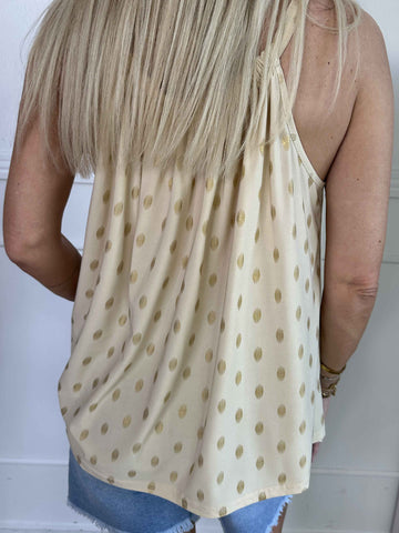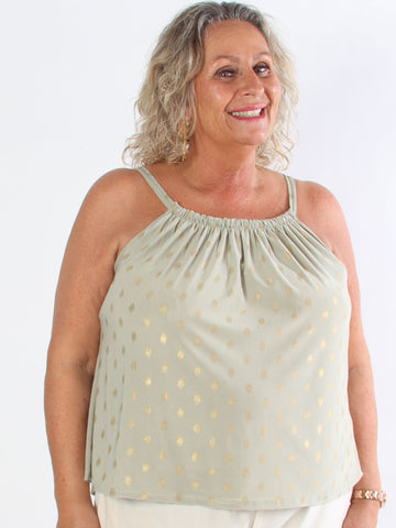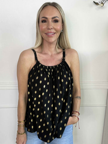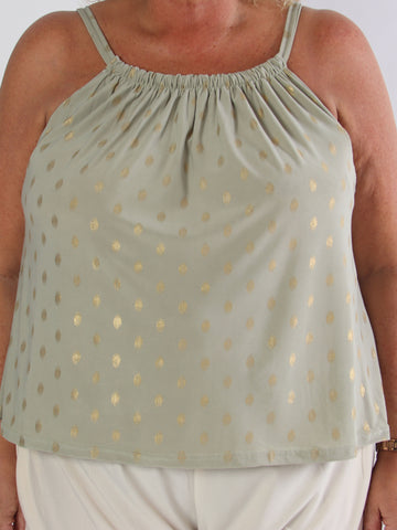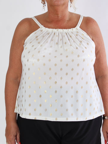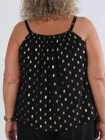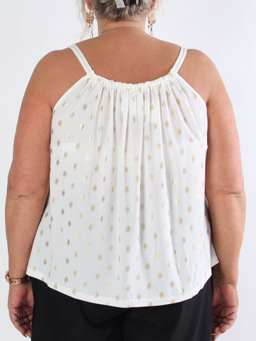 Sunlove Dot Top - Elastisk plus size stroptop med guld dutter