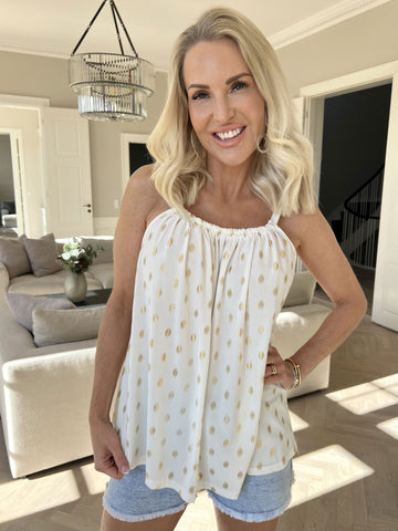 Sunlove Dot Top - Elastisk stroptop med guld dutter