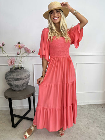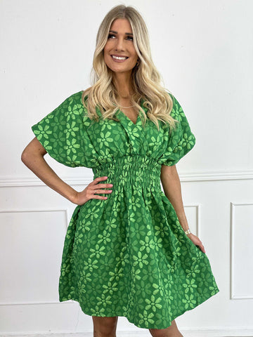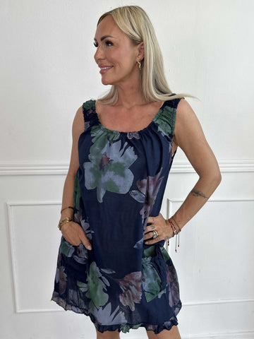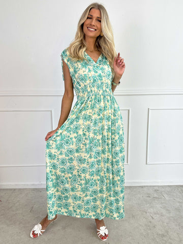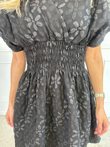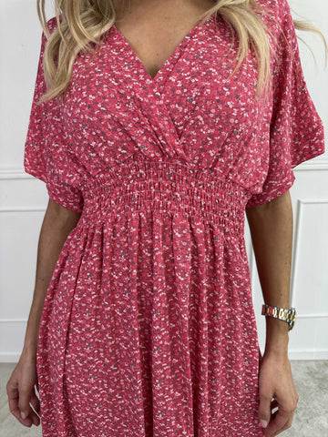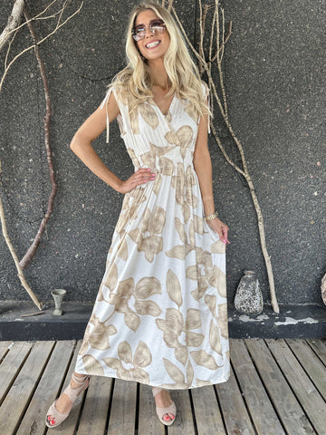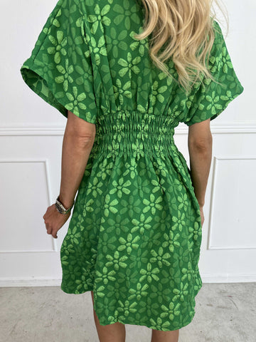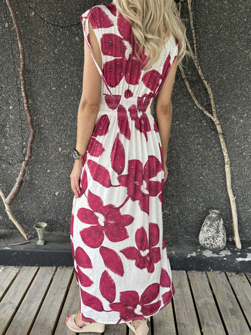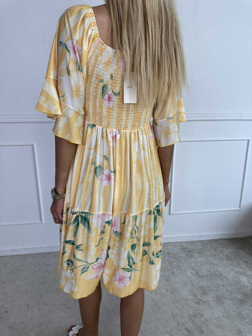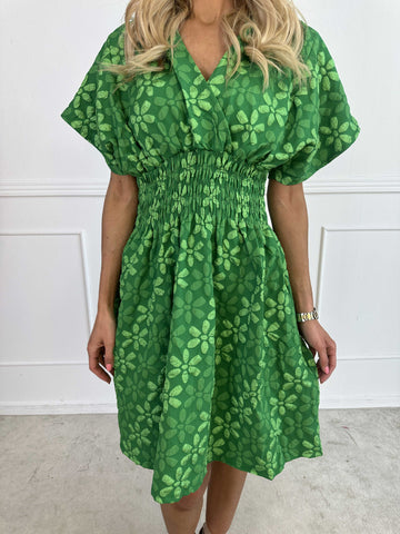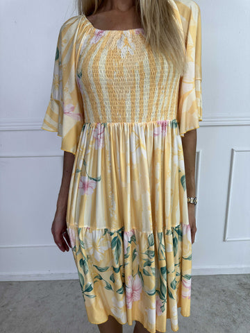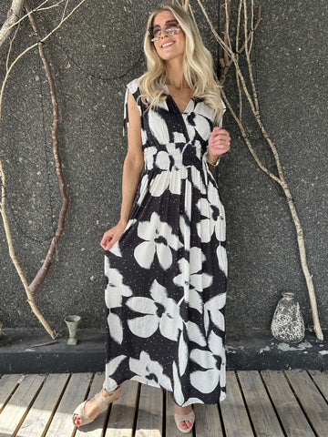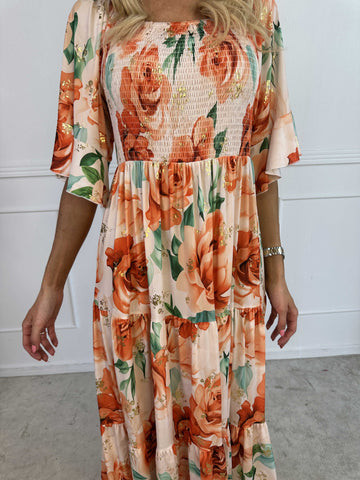 Elna Flower - Blomstret elastisk kjole med smock over brystet