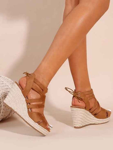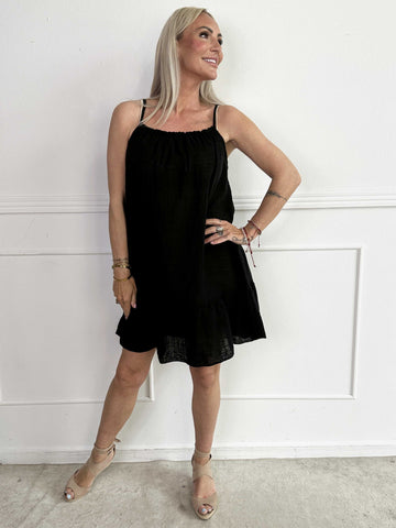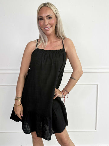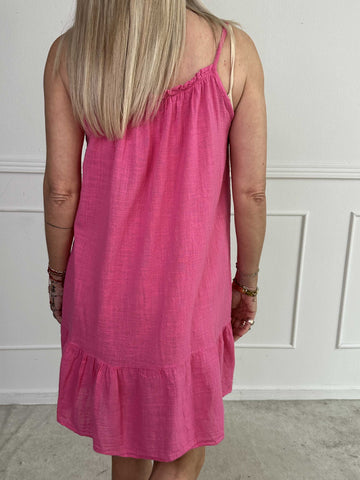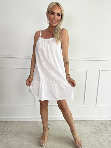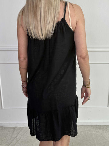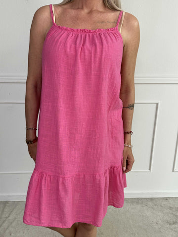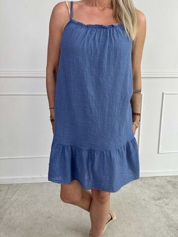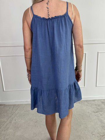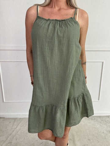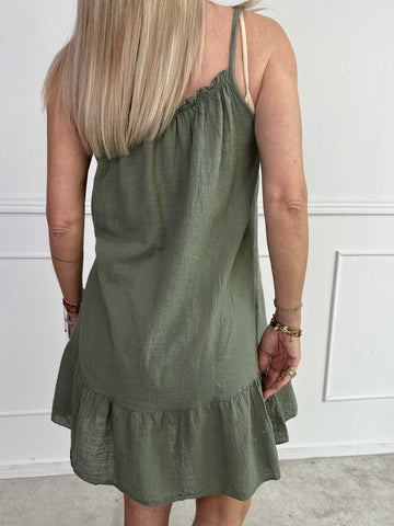 Aegle - Bomulds stropkjole i hørlignende stof med flæsekant