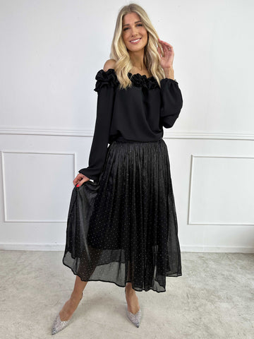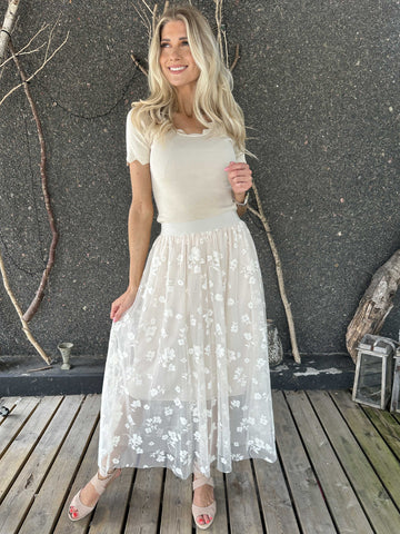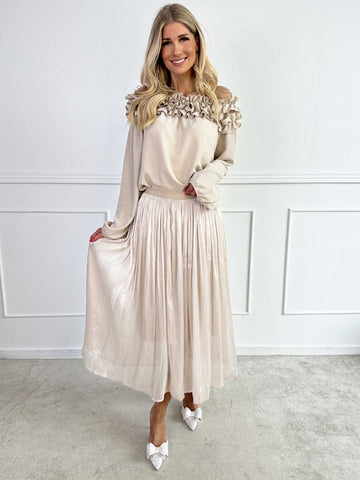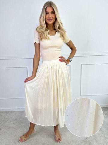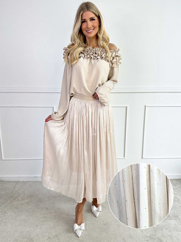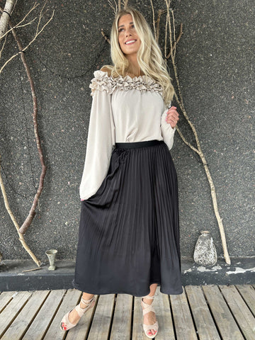 Afrodite - Feminin nederdel i shiny stof med similisten