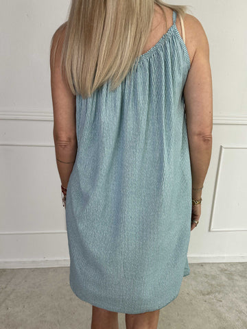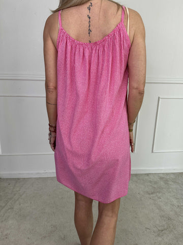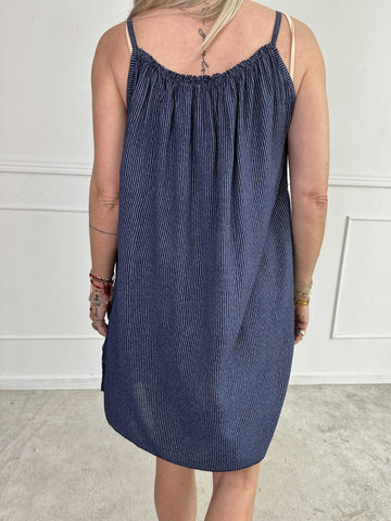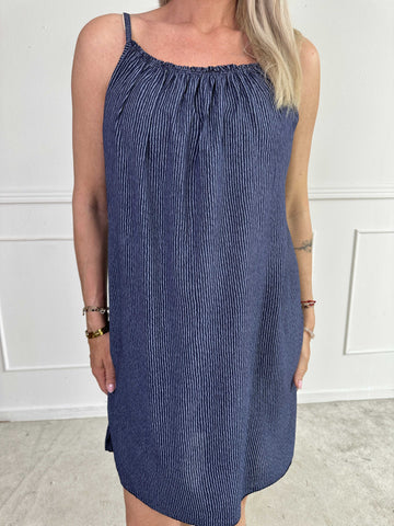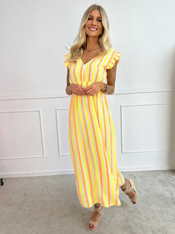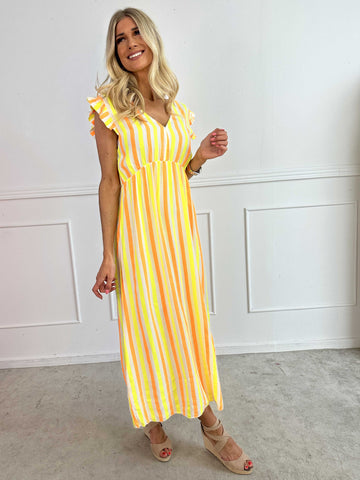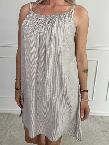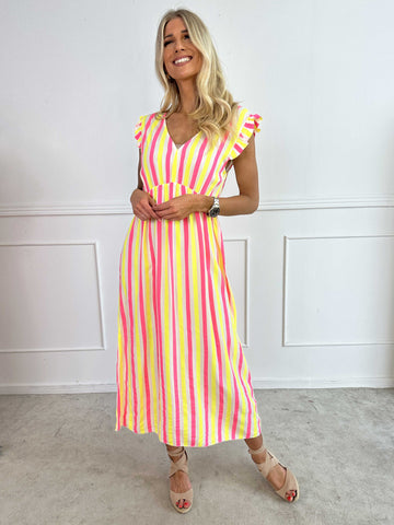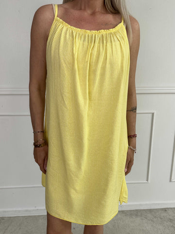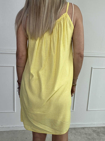 Palina Stripe Short - Sød stribet kjole i viskose med gulddetaljer