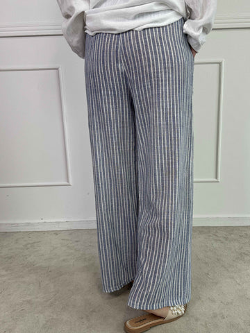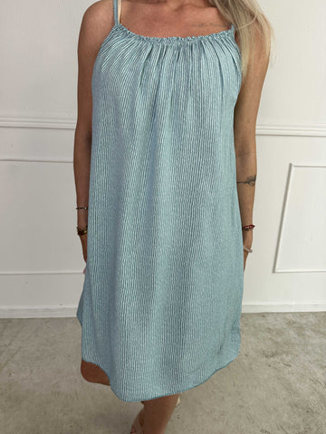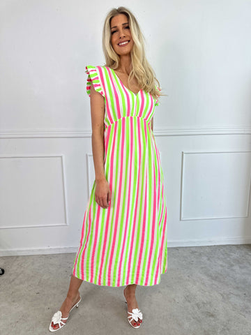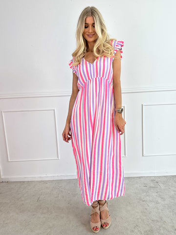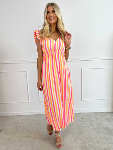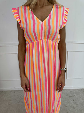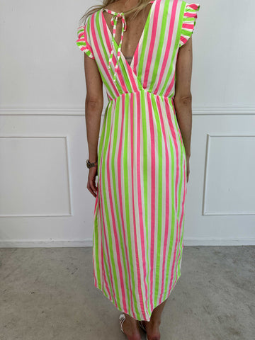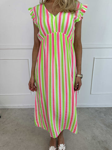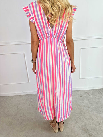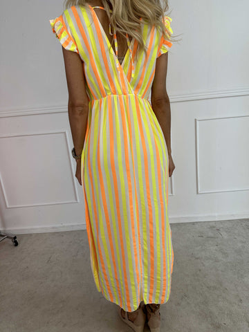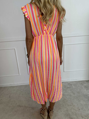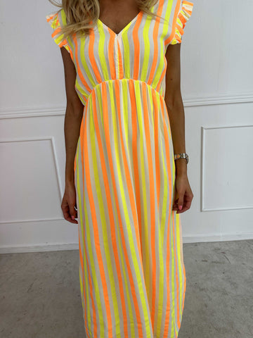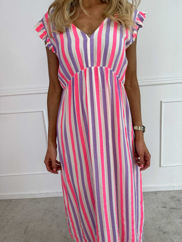 Lyssa - Lang stribet kjole i viskose med farvet striber