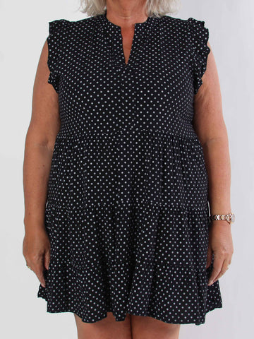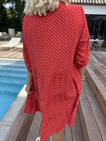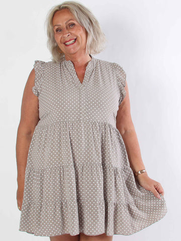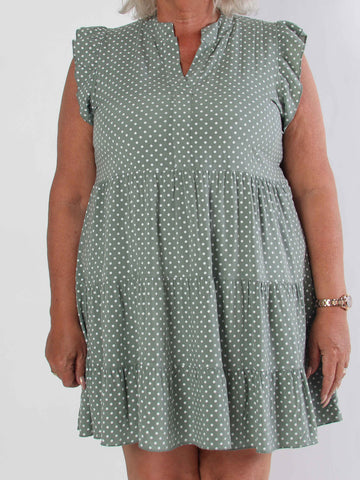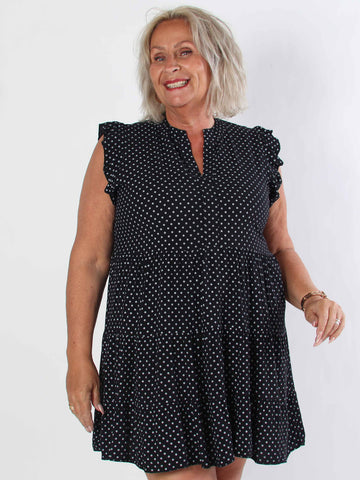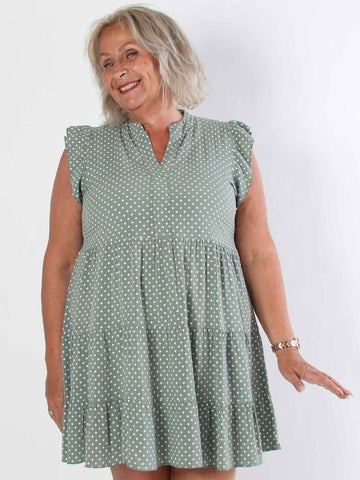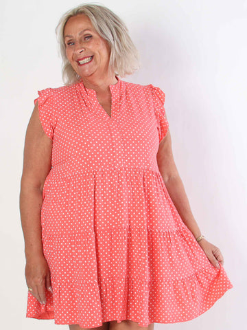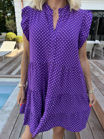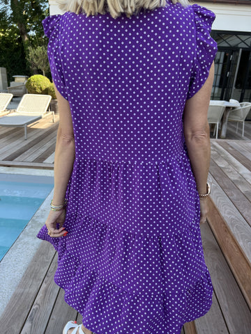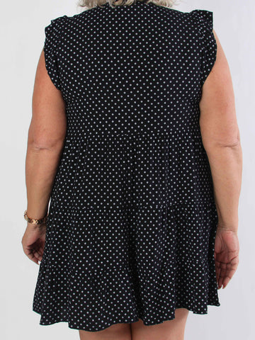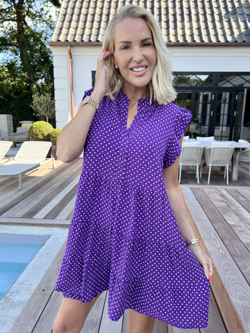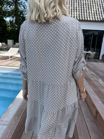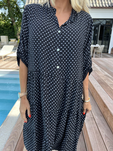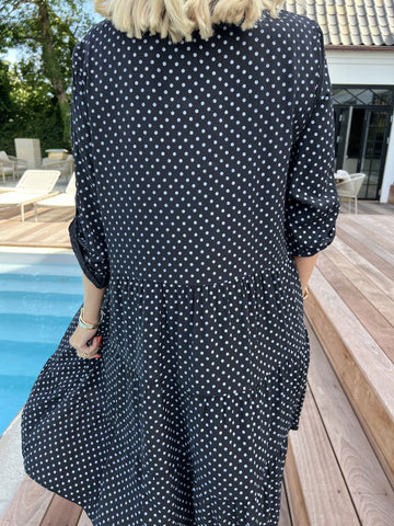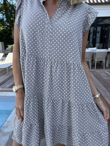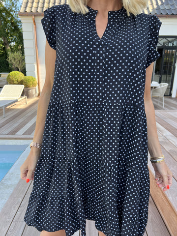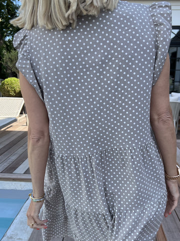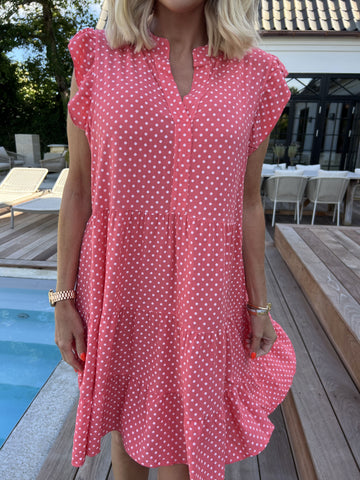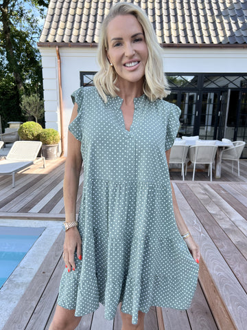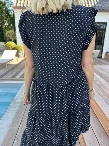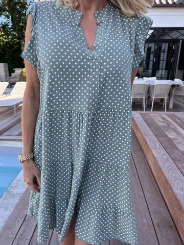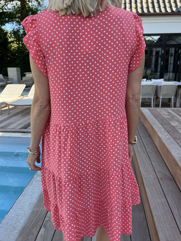 Alcmene Dot - Sød kjole i viskose med prikker og flæseærmer