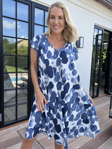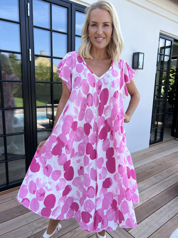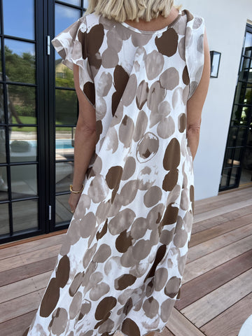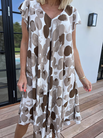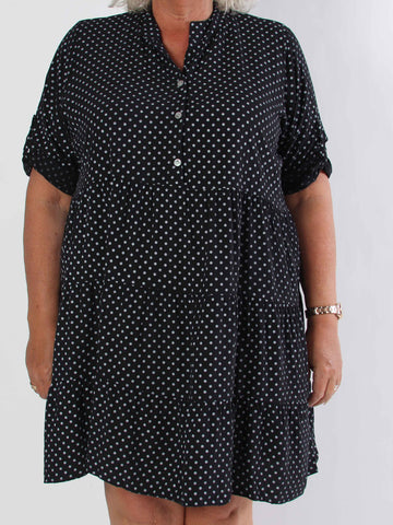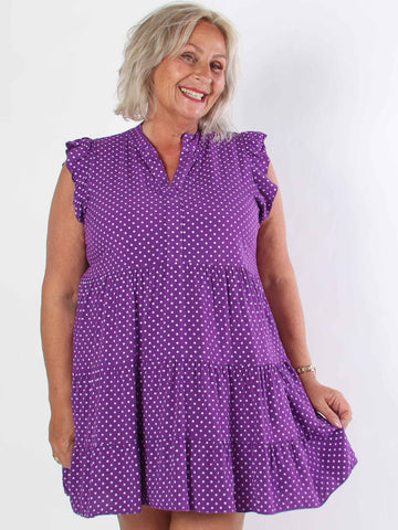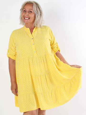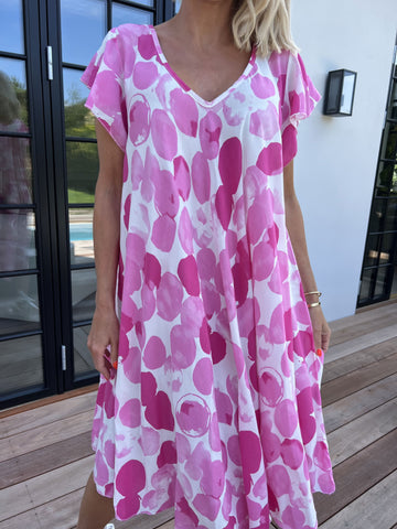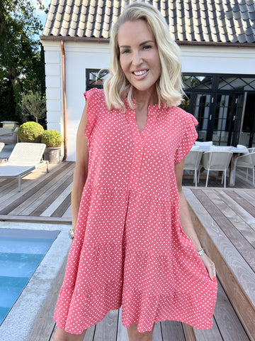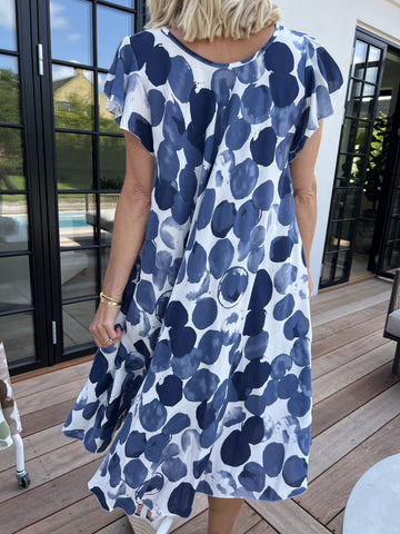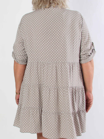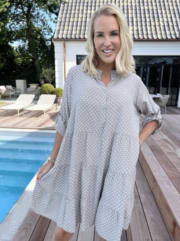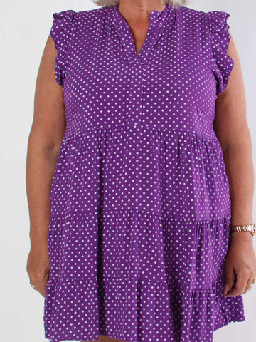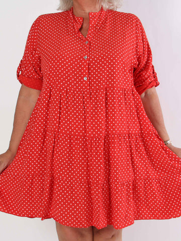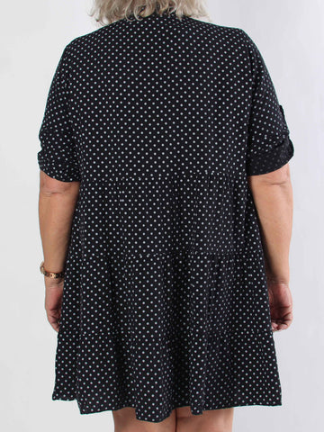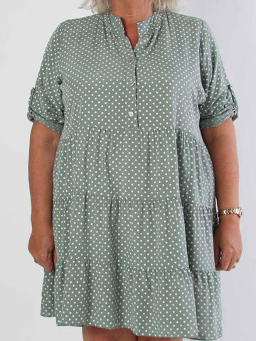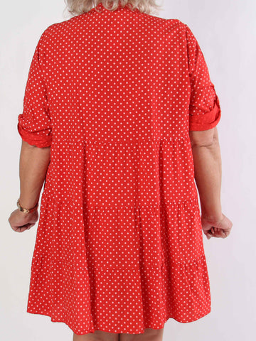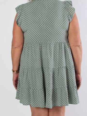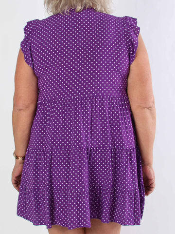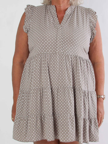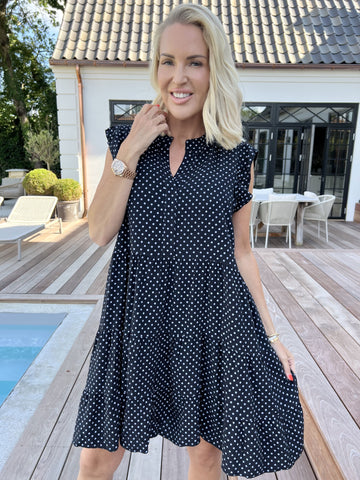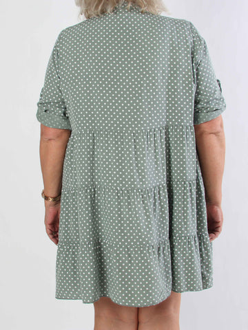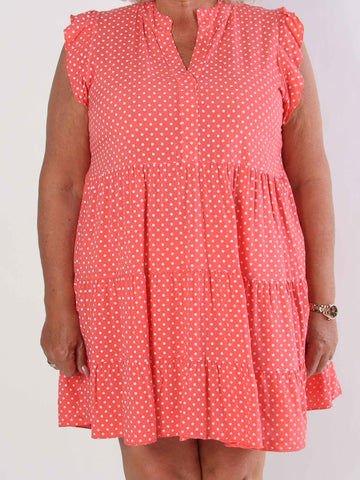 Alcmene Dot - Sød kjole i viskose med prikker og flæseærmer
