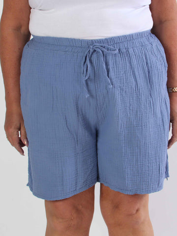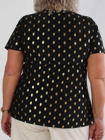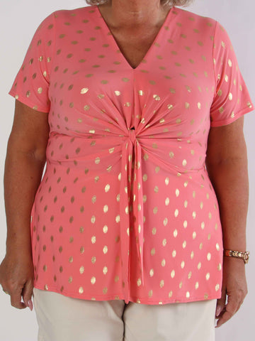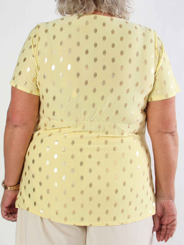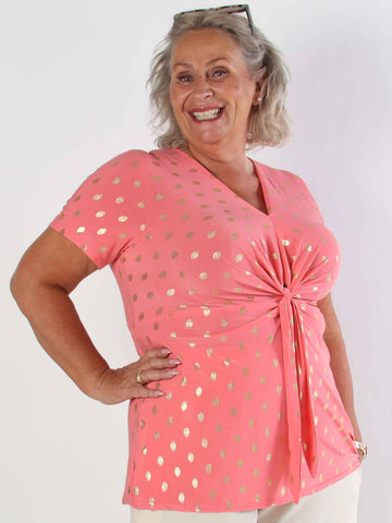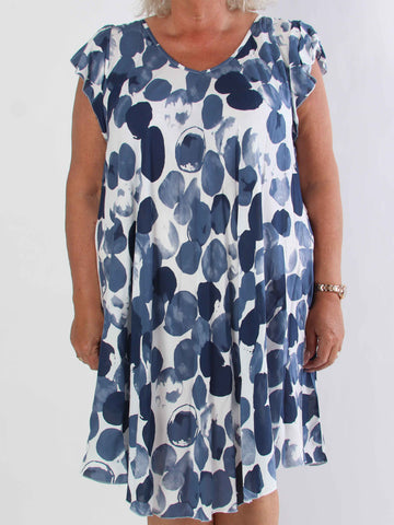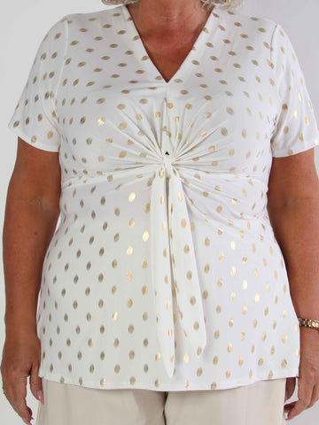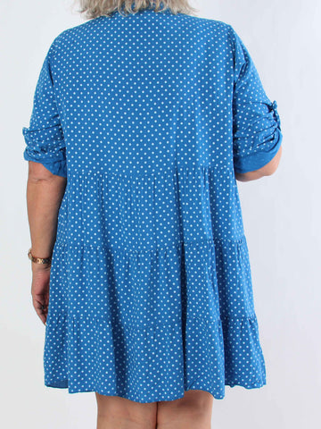 Molly Dot Shirt - Elastisk plus size blue med fin knudedetalje foran