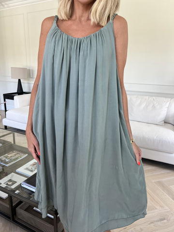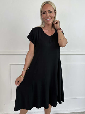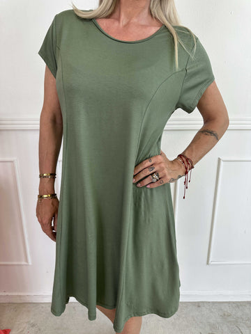 Alcippe - Ensfarvet viskose kjole i a-facon