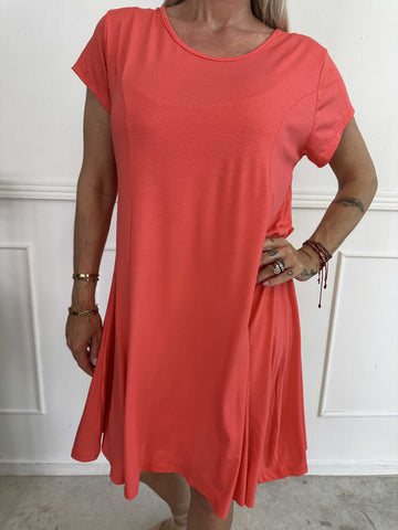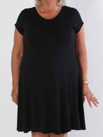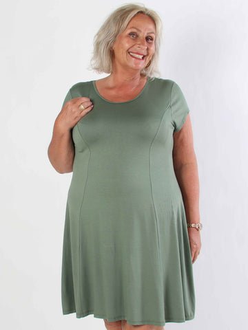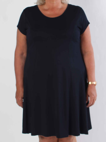 Alcippe - Ensfarvet plus size viskose kjole i a-facon