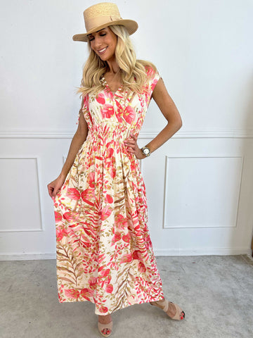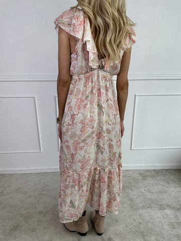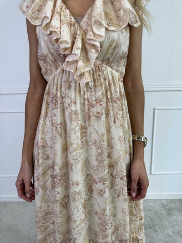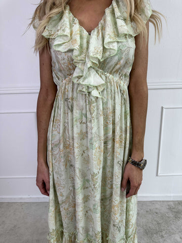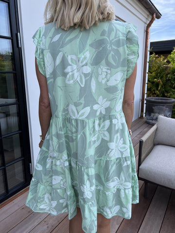 Daenerys - Sød sommerkjole i viskose med flæser og blomster
