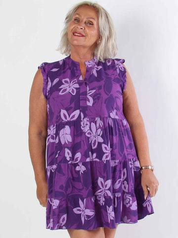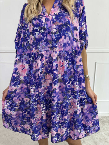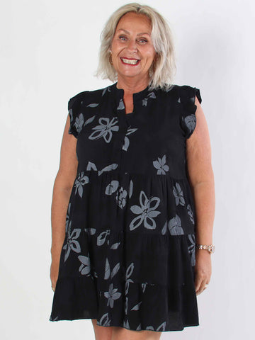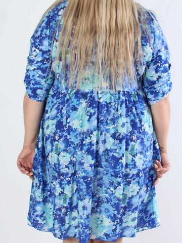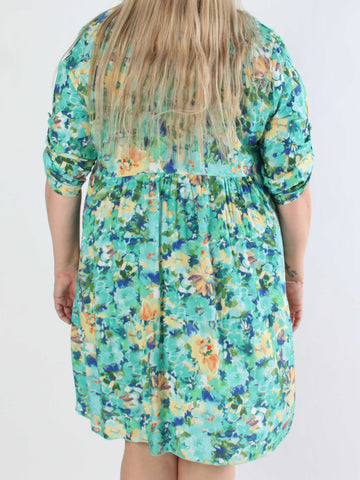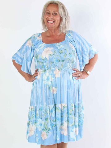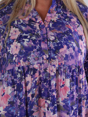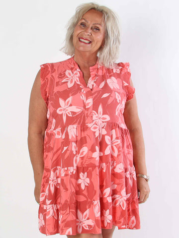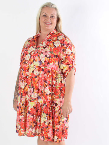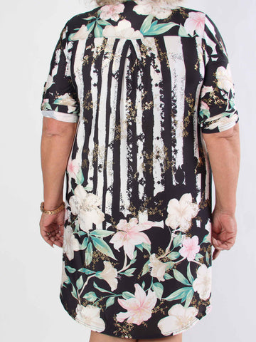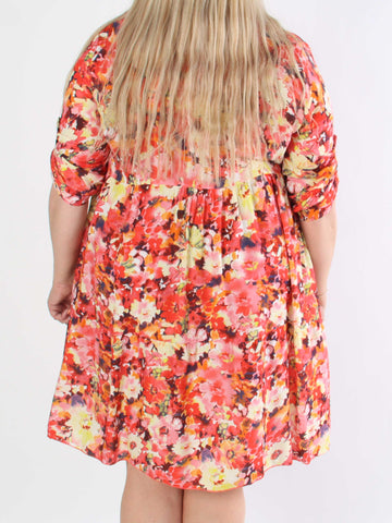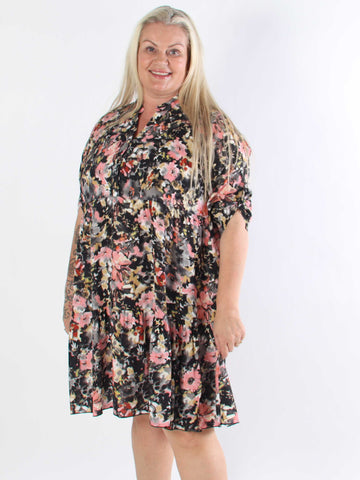 Pams Bloom Short - Feminin plus size kjole med blomstermotiver