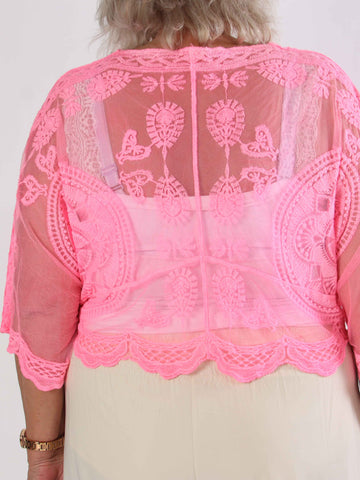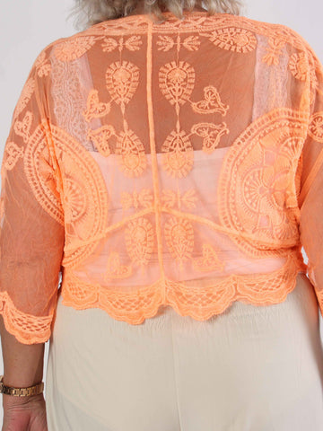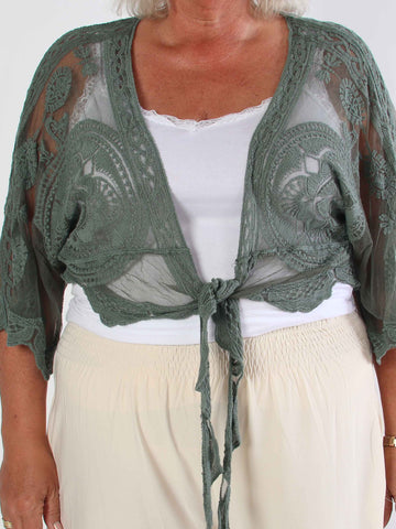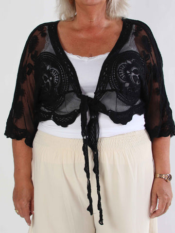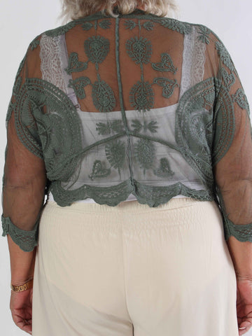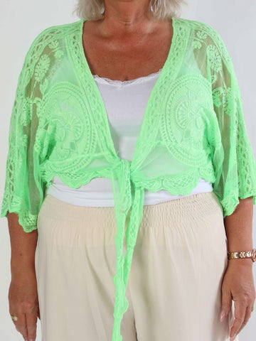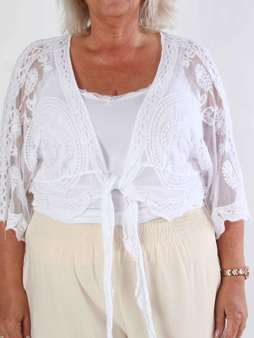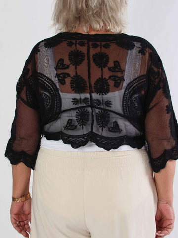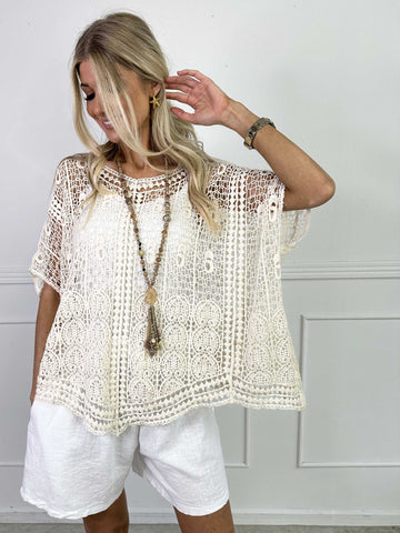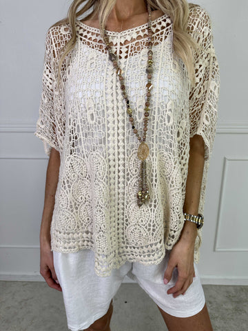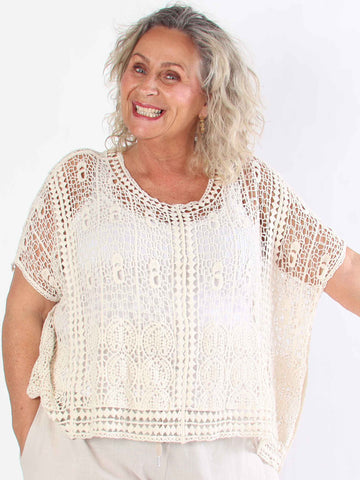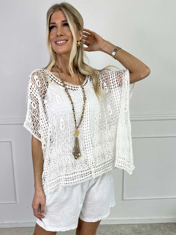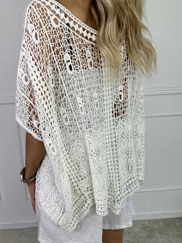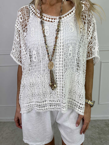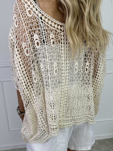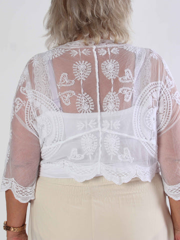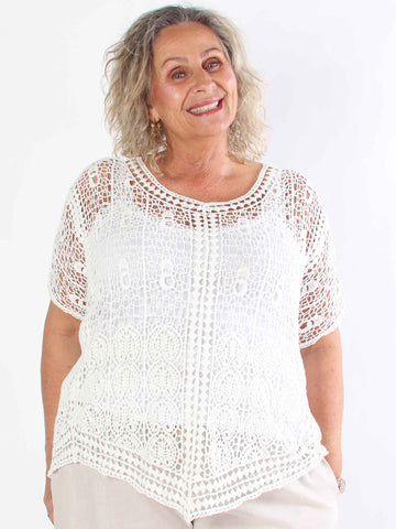 Missandei - Sød hæklet plus size bluse i bomuld med hulmønster