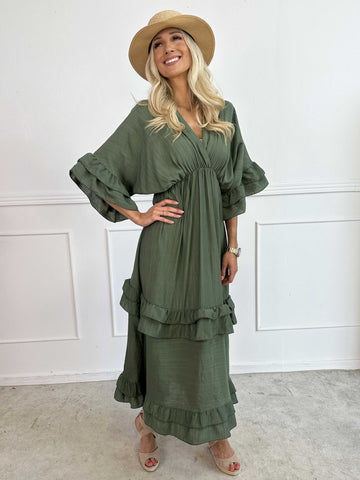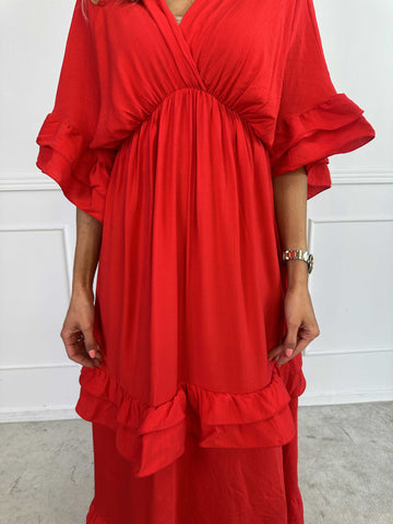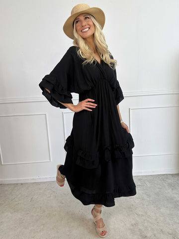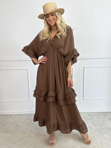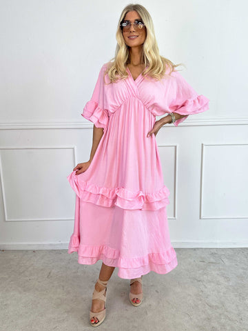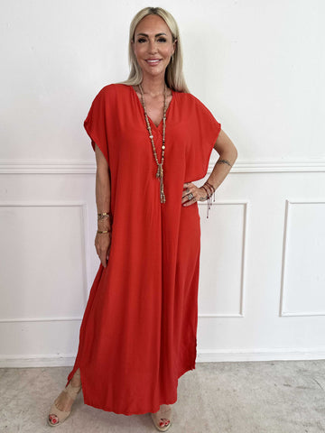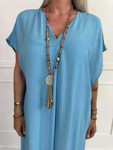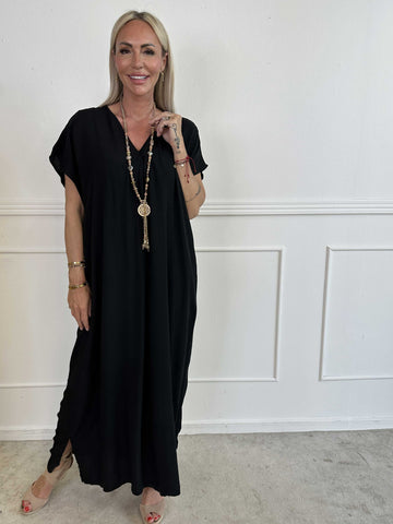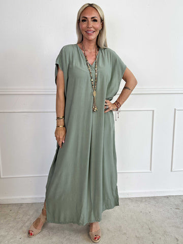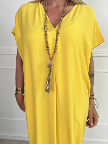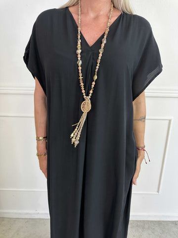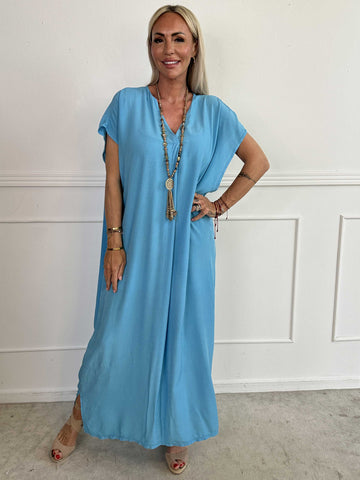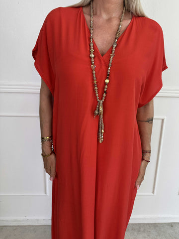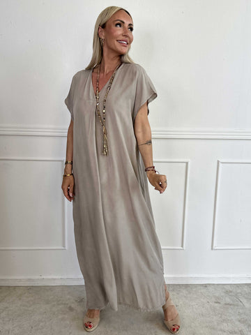 Briseis - Lang luftig kjole i viskose med v-udskæring
