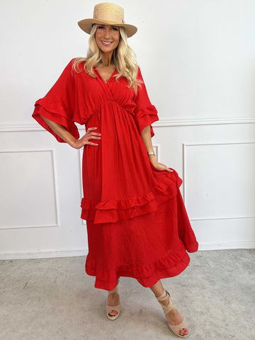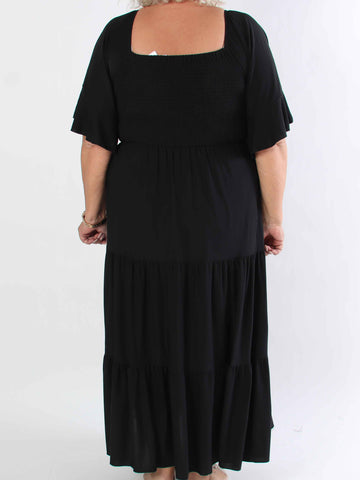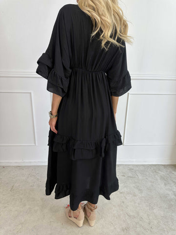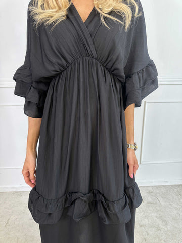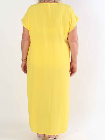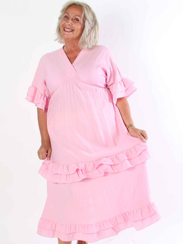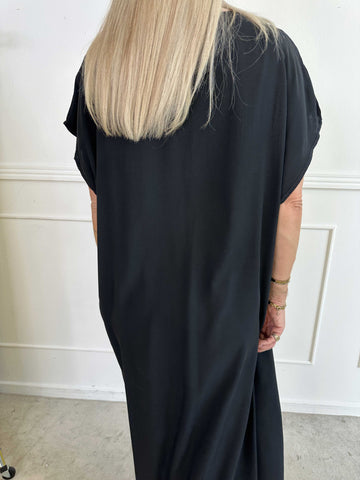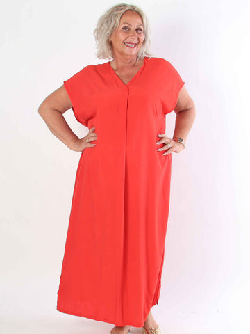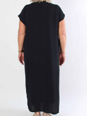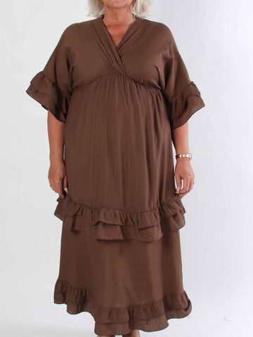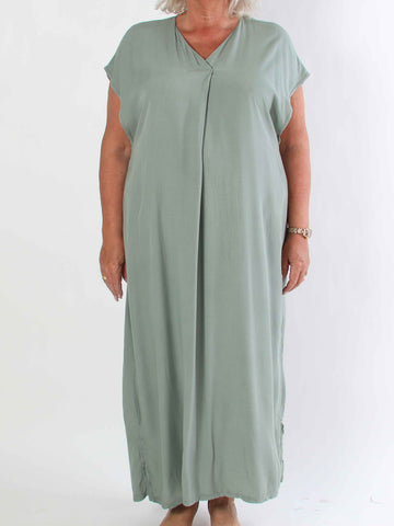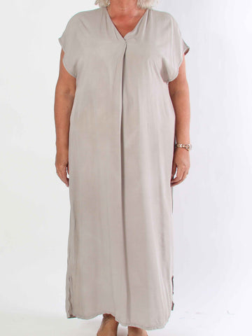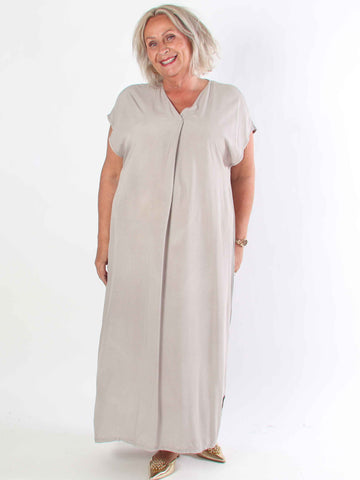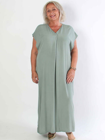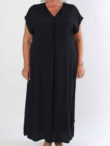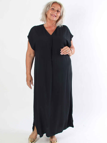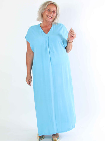 Briseis - Lang luftig plus size kjole i viskose med v-udskæring