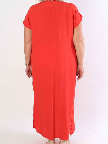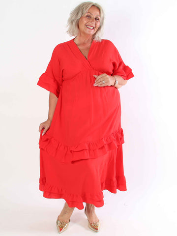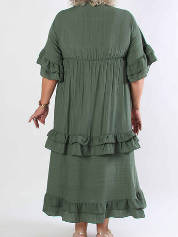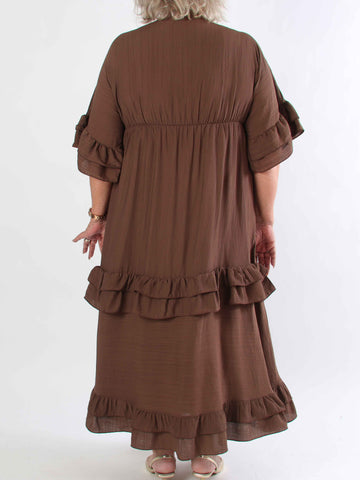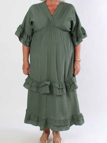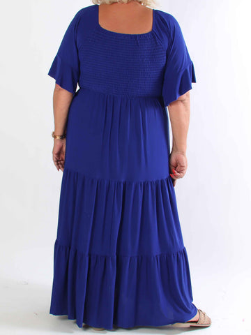 Europe - Lang plus size kjole i viskose med flæsedetaljer