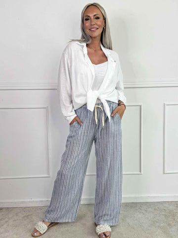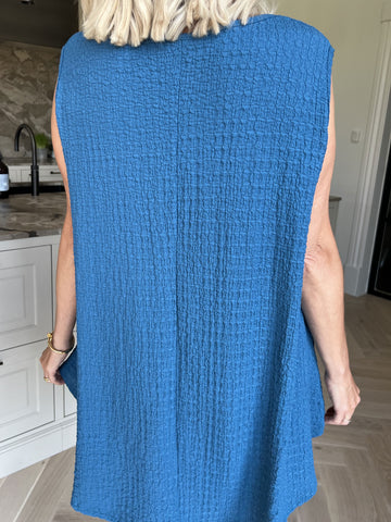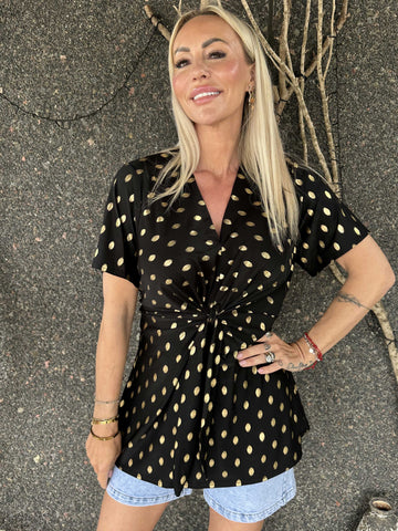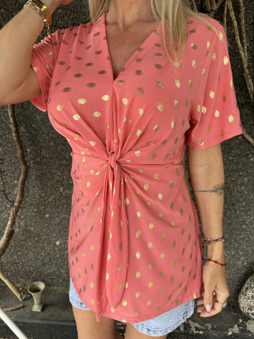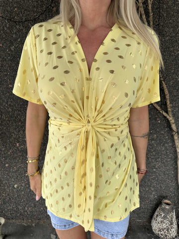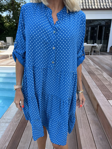 Molly Dot Shirt - Elastisk blue med fin knudedetalje foran