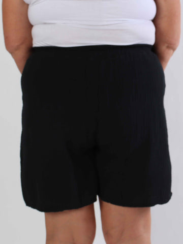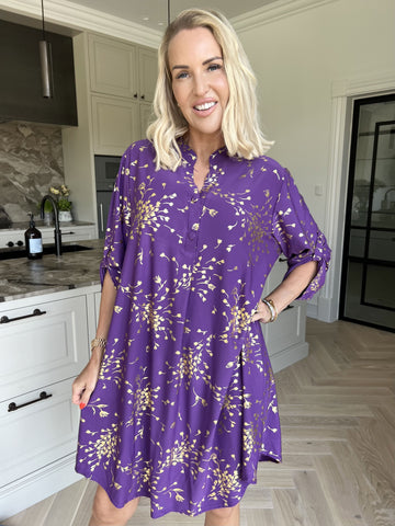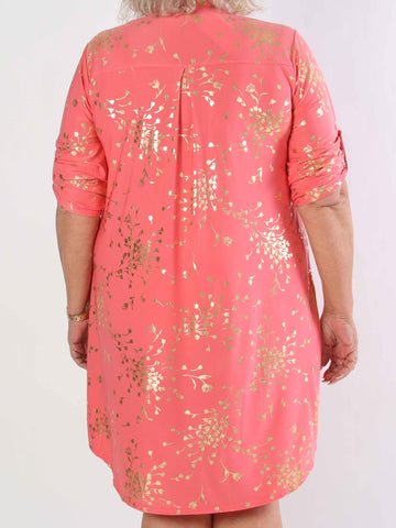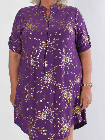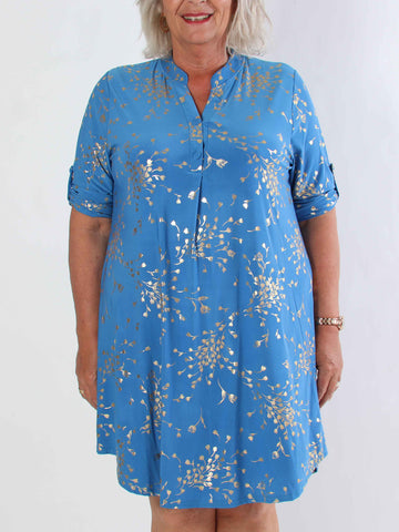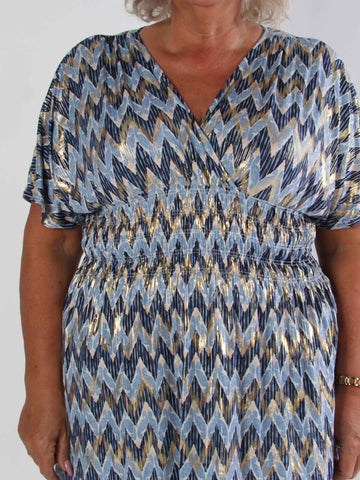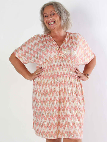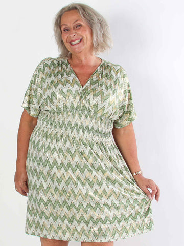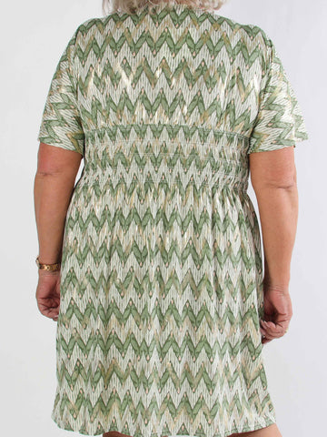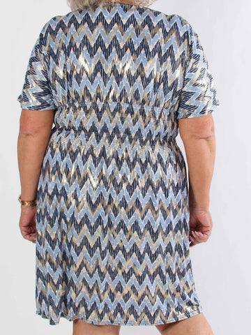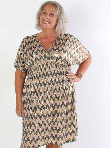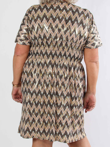 Pams Zigzag Short - Elastisk mønstret plus size kjole med guld detaljer
